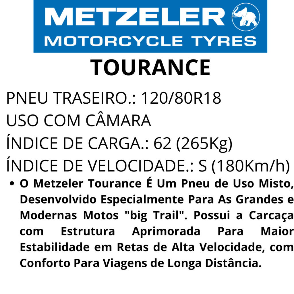 Pneu Moto 120/80R18 Traseiro Metzeler Tourance Uso Com Câmara Novo