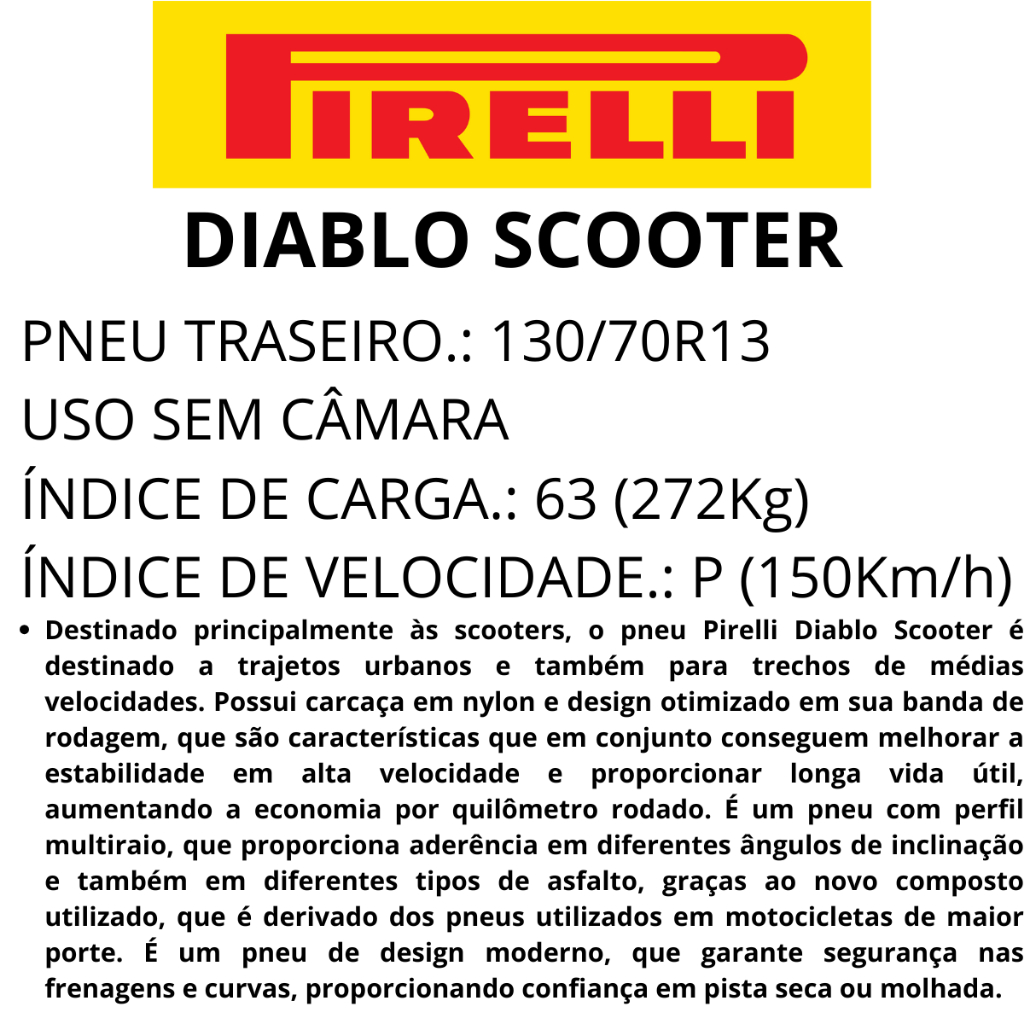 Pneu Moto 130/70R13 Traseiro Pirelli Diablo Scooter