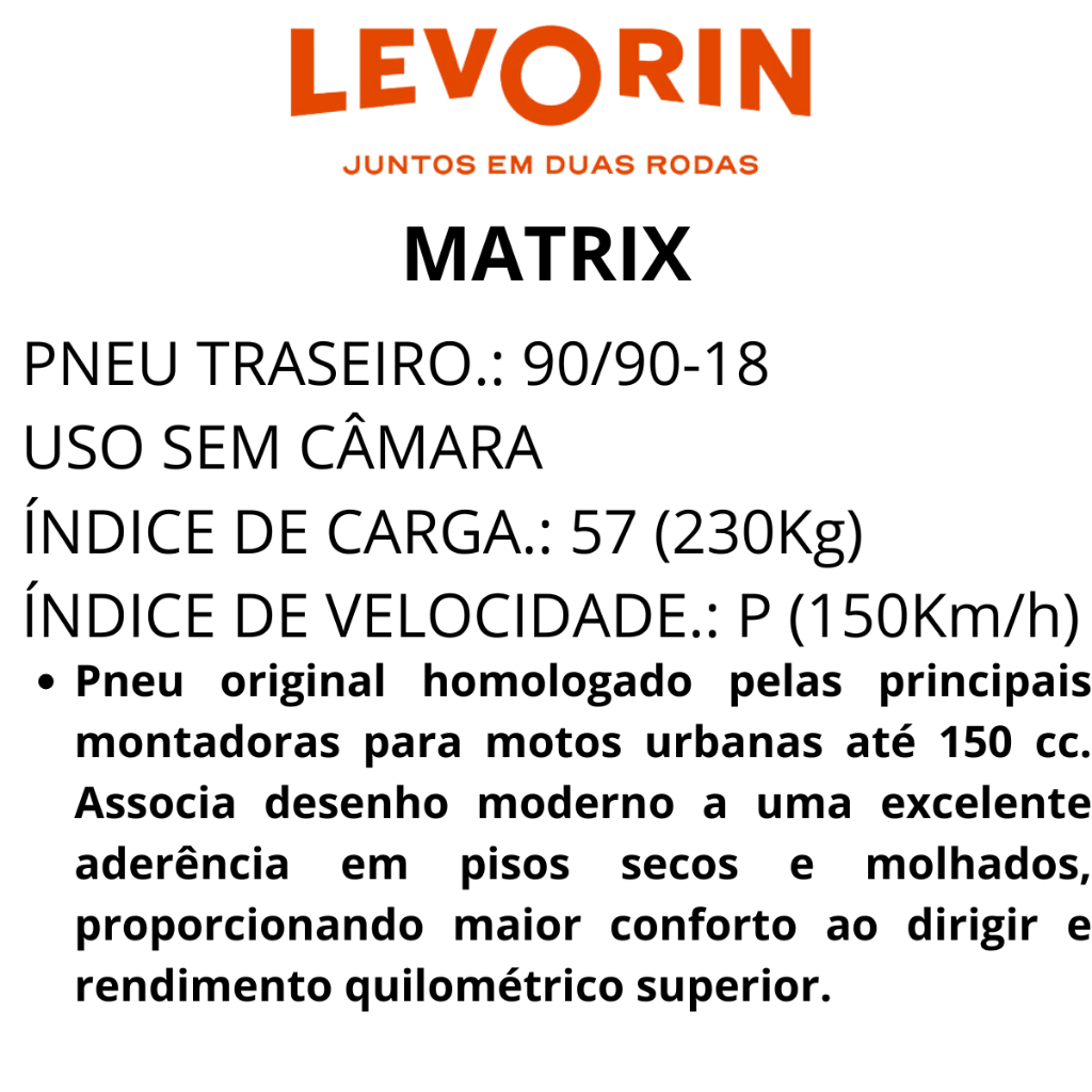 Pneu Moto 90/90-18 Traseiro Levorin Matrix Original Uso Sem Câmara