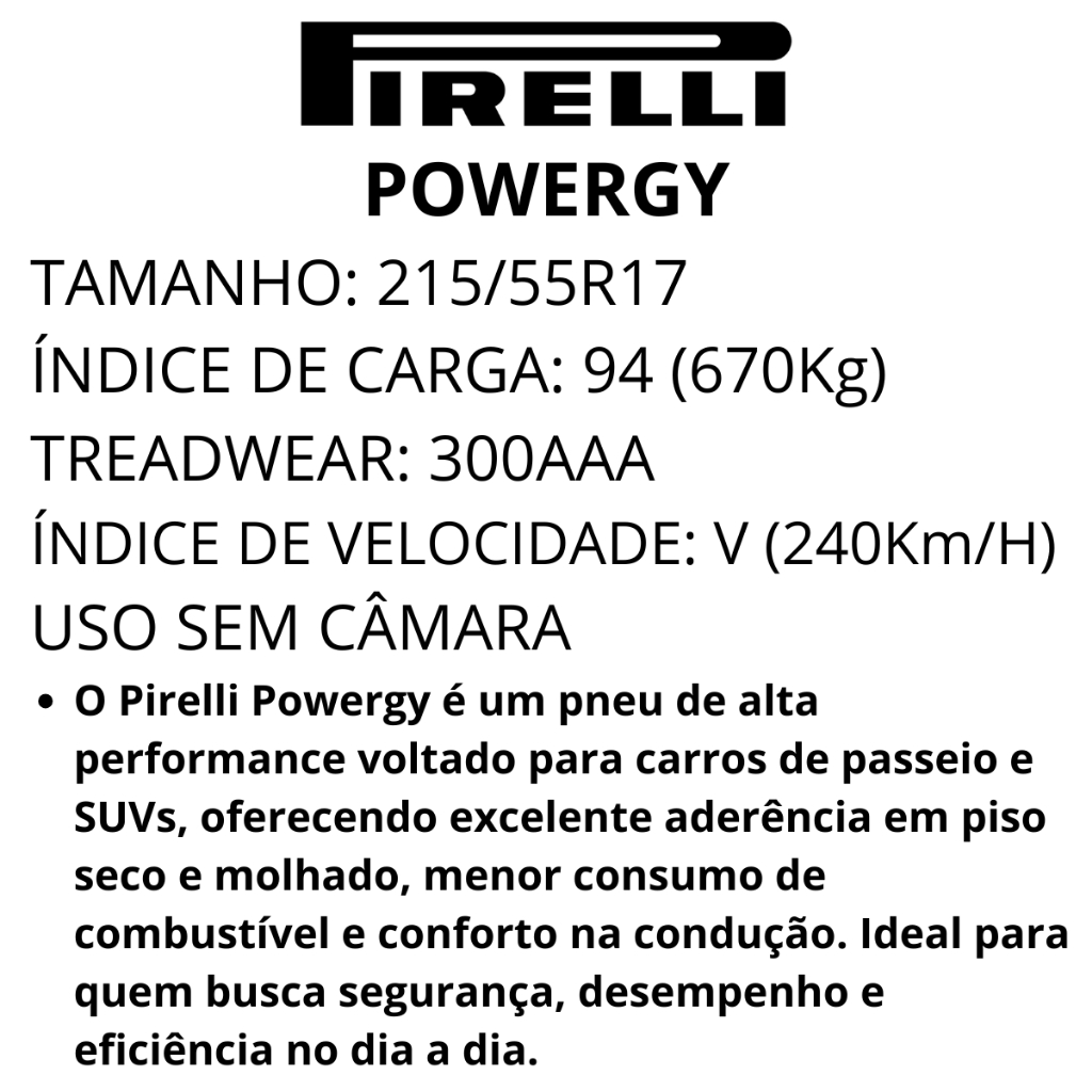 Pneu 215/55r17 94v Powergy Pirelli Aro 17