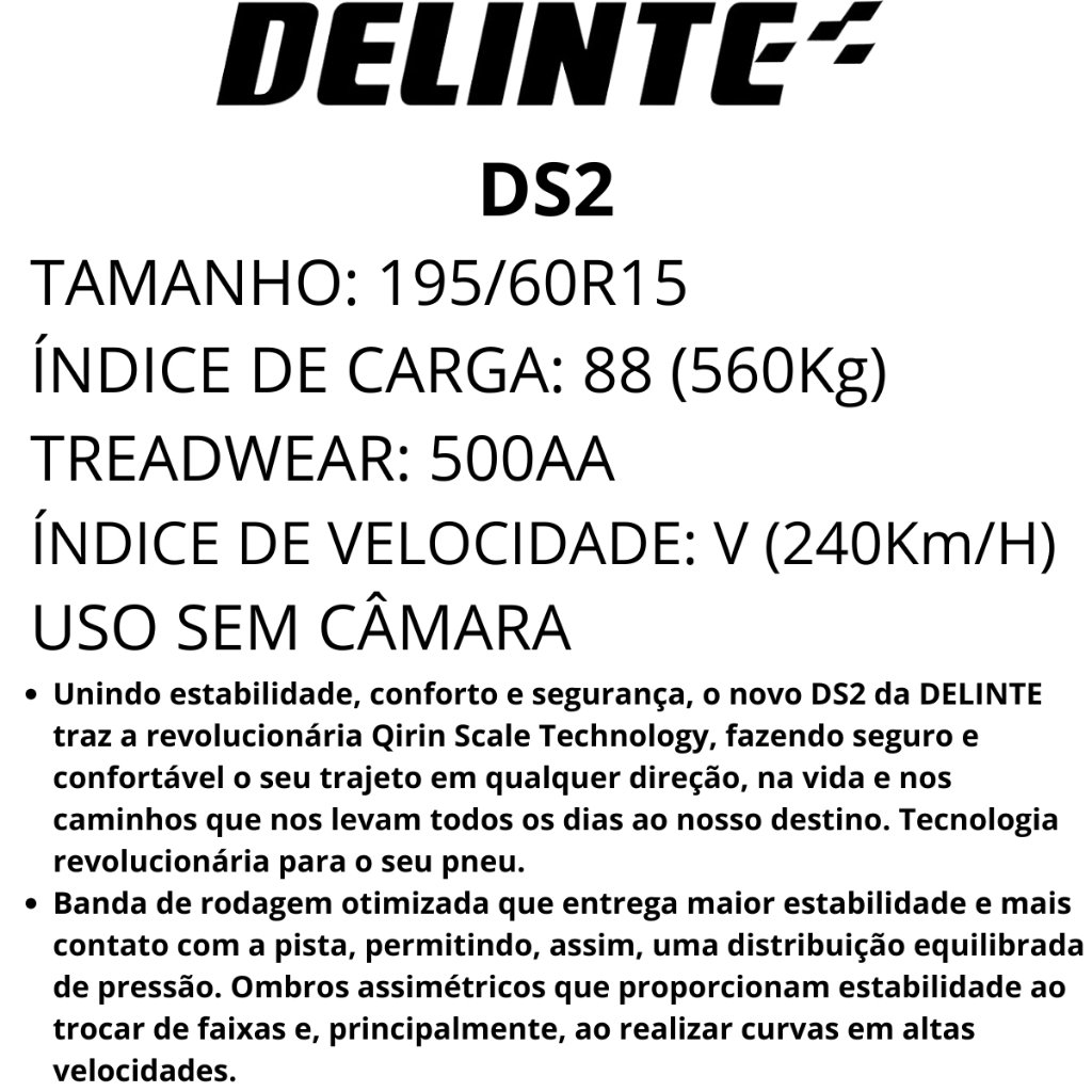 Pneu Carro 195/60r15 Ds2 Tl 88v Delinte Aro 15