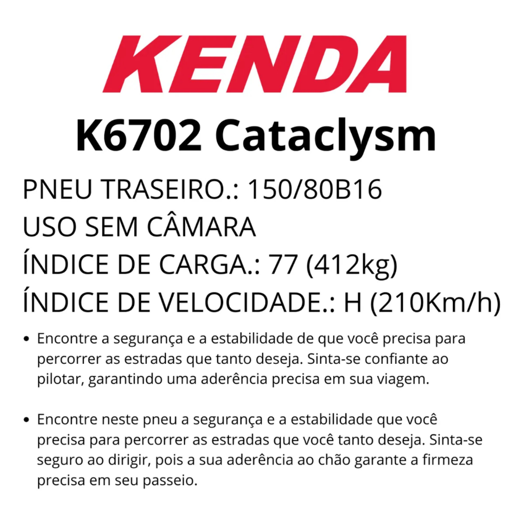 Pneu Moto Traseiro 150/80b16 77h Kenda K6702 Cataclysm