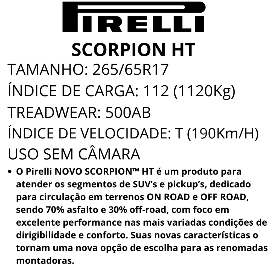 Pneu 265/65r17 112t Scorpion Ht Pirelli Aro 17
