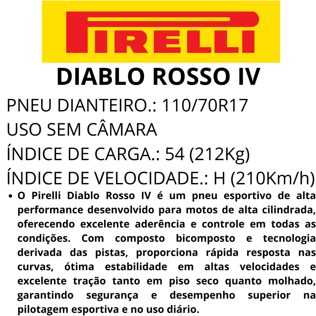 Pneu Moto 110/70R17 Diablo Rosso 4 Dianteiro TL 54H Pirelli