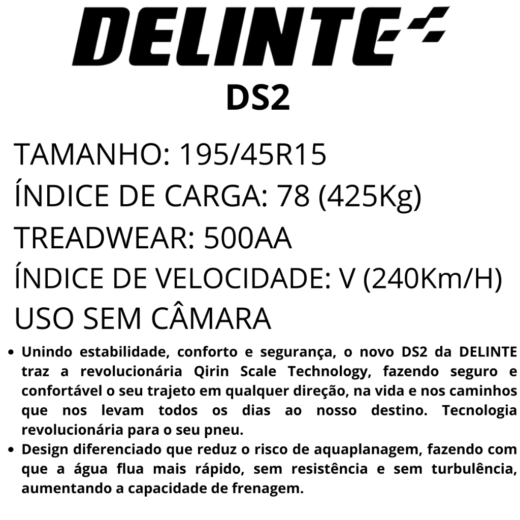 Kit 2 Pneu Delinte Aro R15 195/45r15 78v Ds2