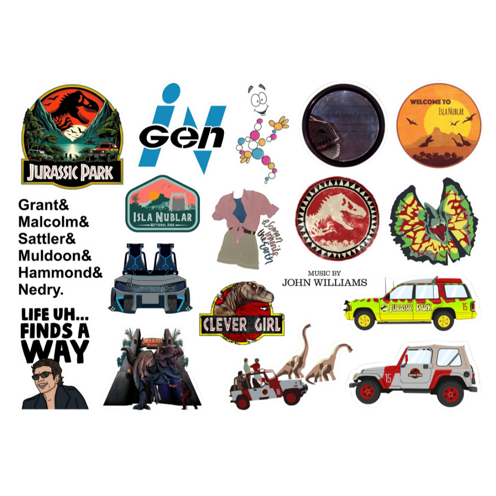 JURASSIC PARK - CARTELA DE ADESIVOS (sem recorte, com recorte ou a prova d'água)