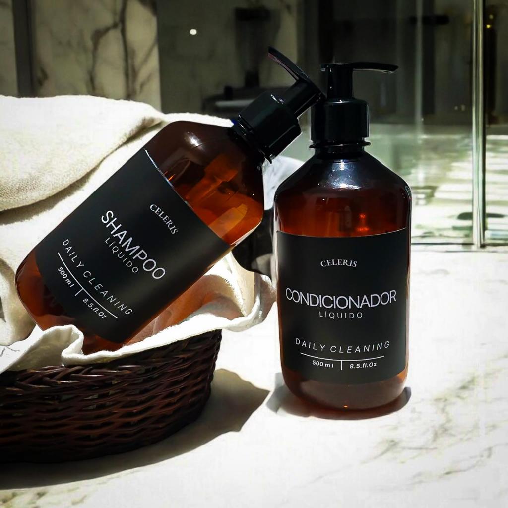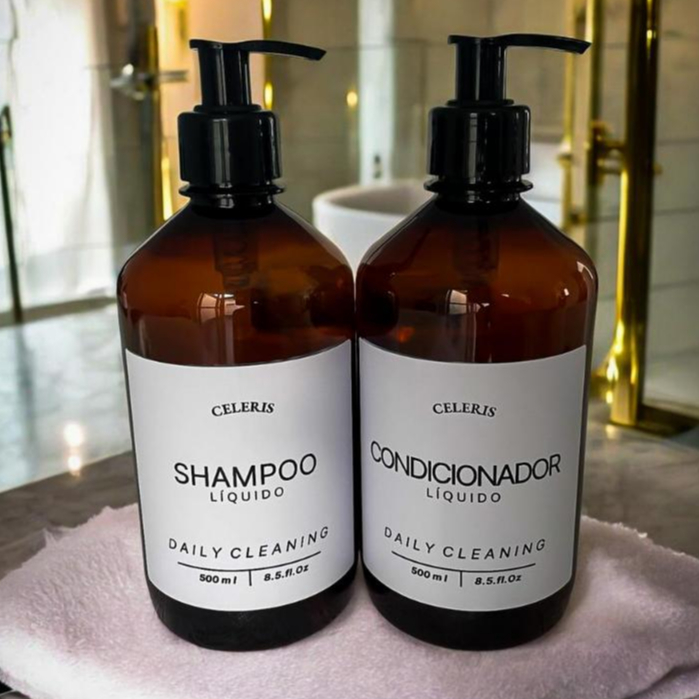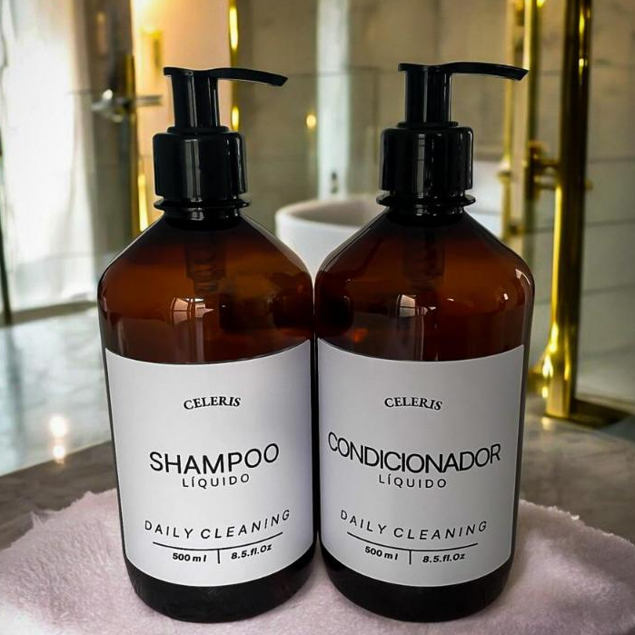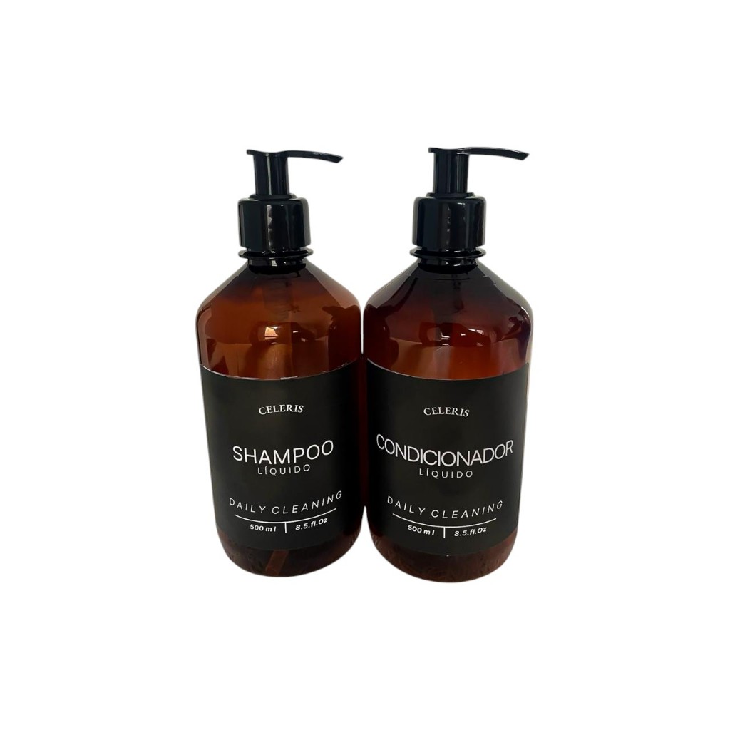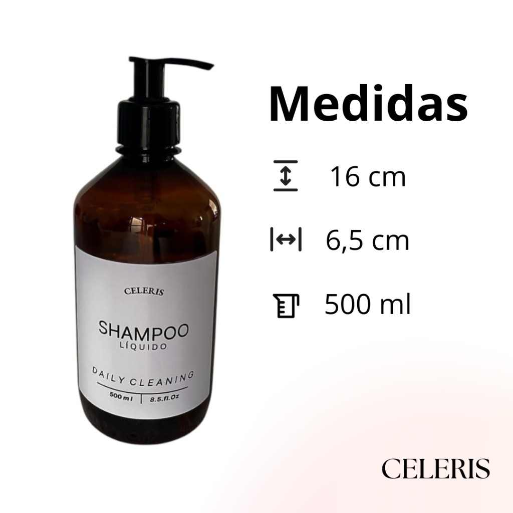Kit 2 Dispensers Âmbar 500ml com Válvula Pump | Para Shampoo e Condicionador | Dispenser para Banheiro | Minimalista