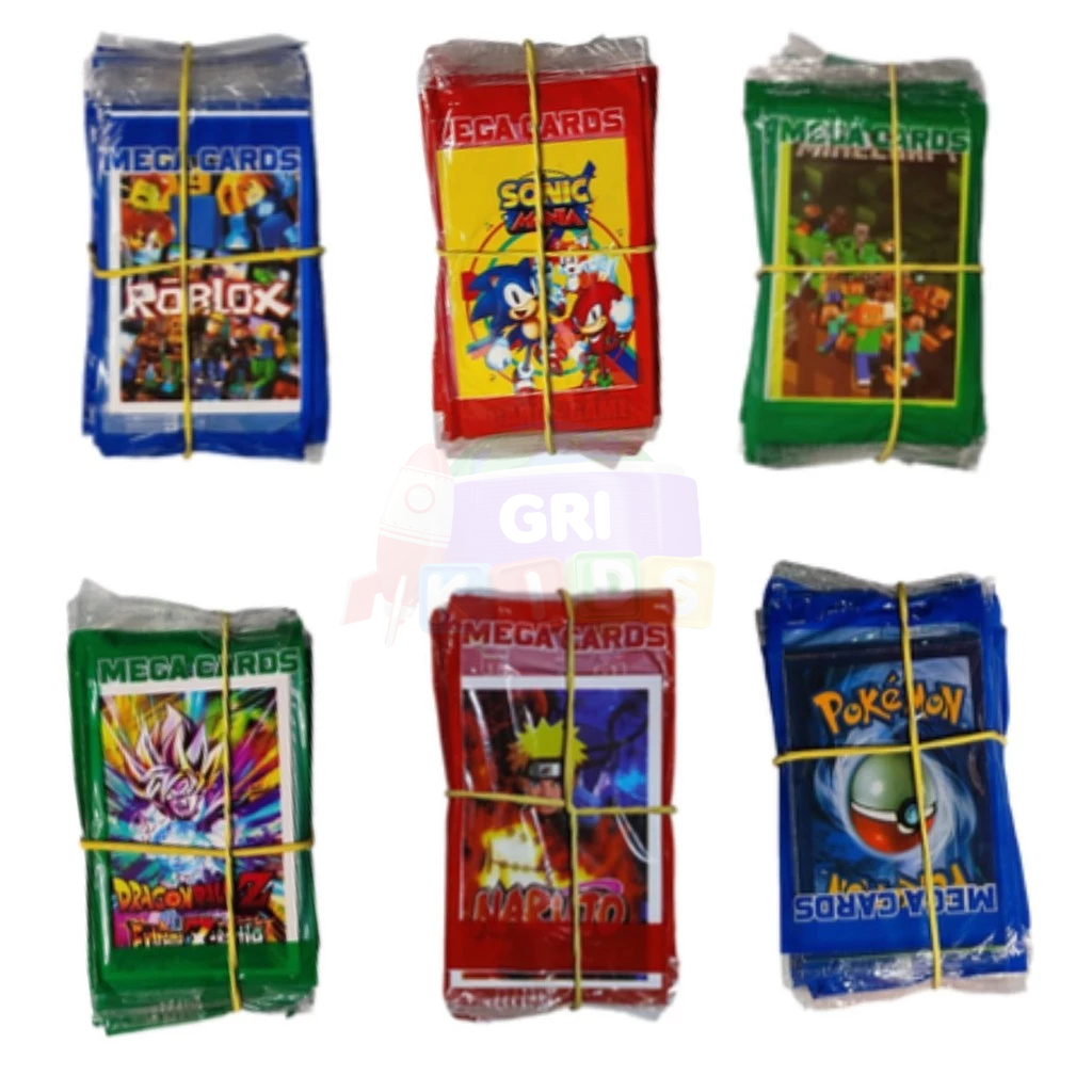 Kit 200 /400 Cards Figurinhas 50 / 100 Pacotes Para Bater Trocar Cartas Minecraft Sonic Pokemon Naruto