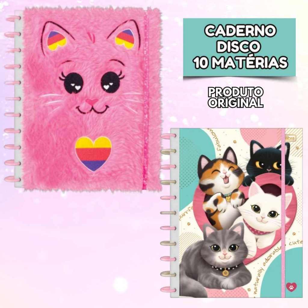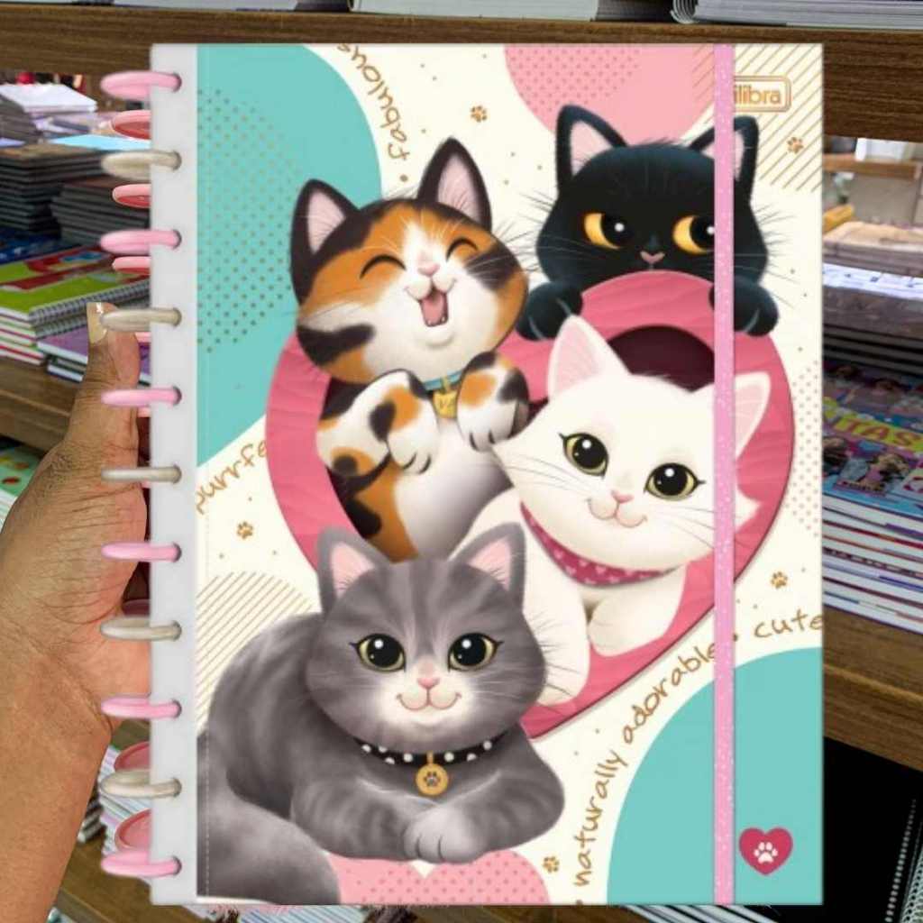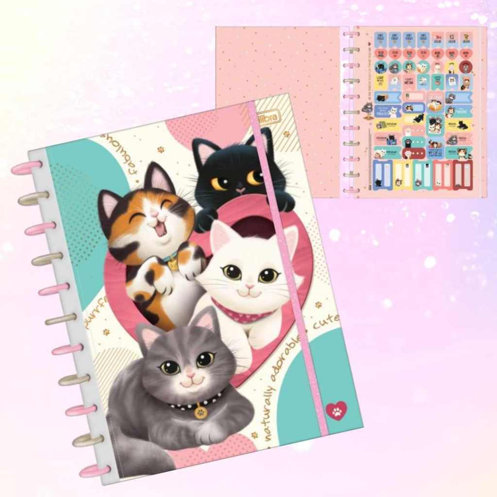 Caderno de Disco Peluciado Grande 10 MatériasTilidisco Purrfect Cats 160 Folhas - Tilibra