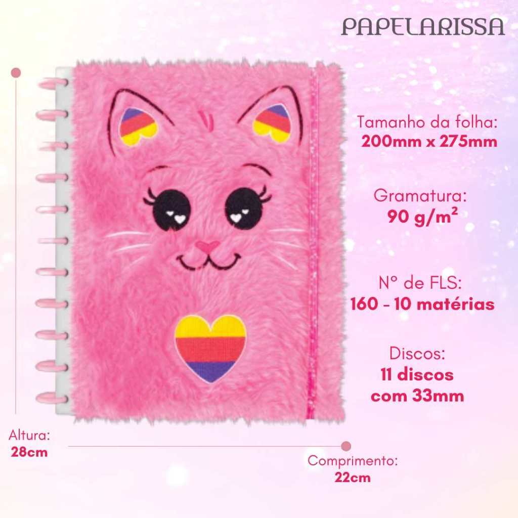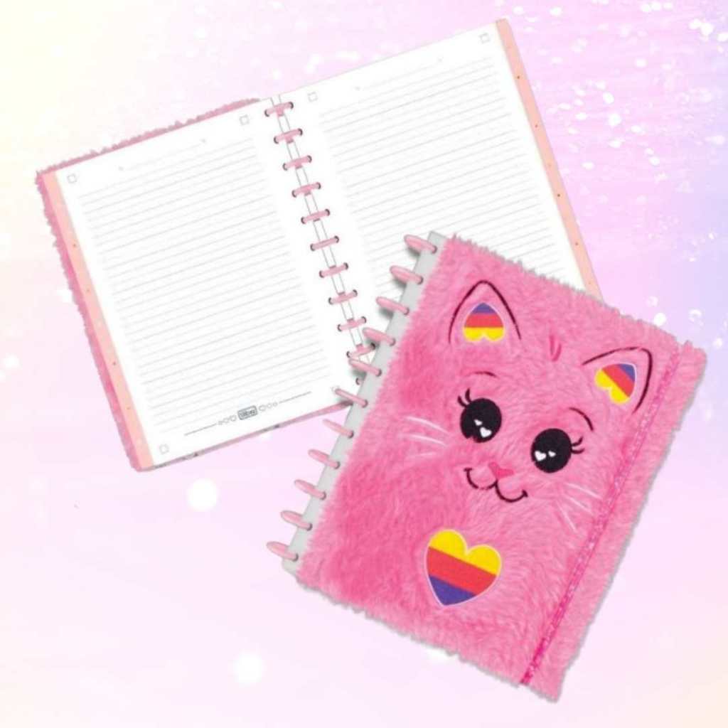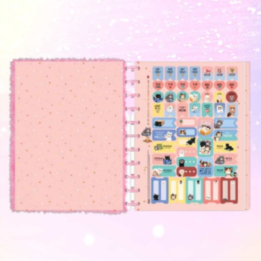 Caderno de Disco Peluciado Grande 10 MatériasTilidisco Purrfect Cats 160 Folhas - Tilibra