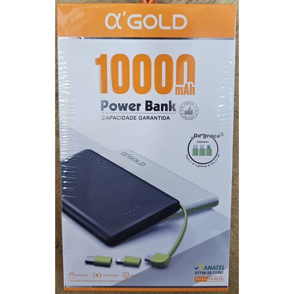 Carregador Portátil Power Bank 10000mAh GOLD PN-951A