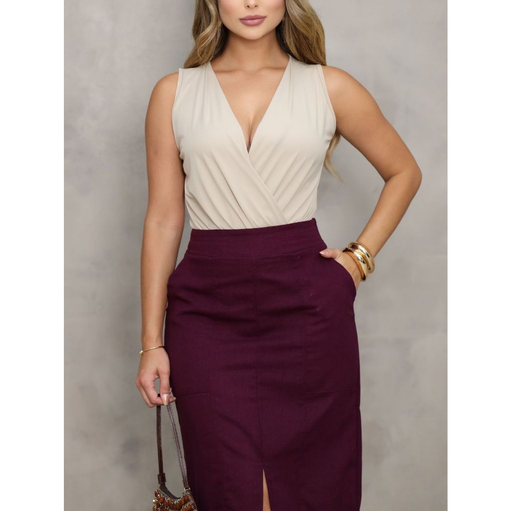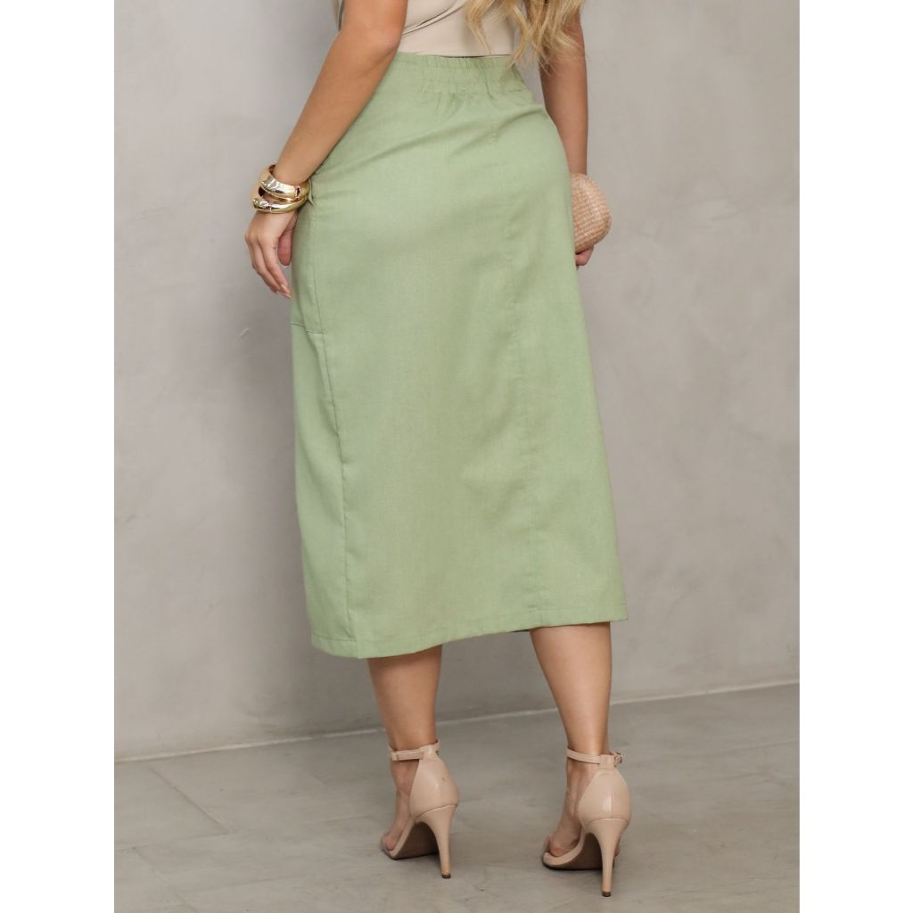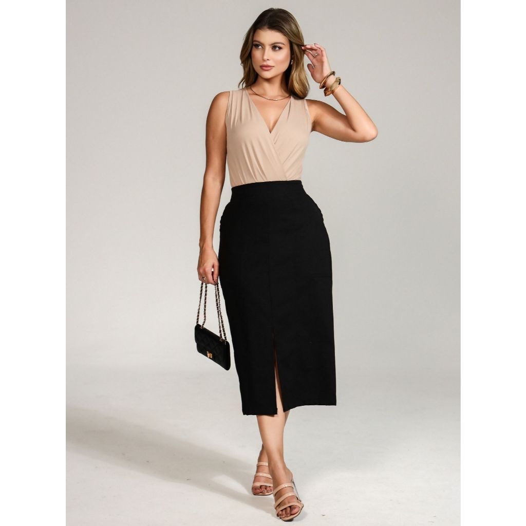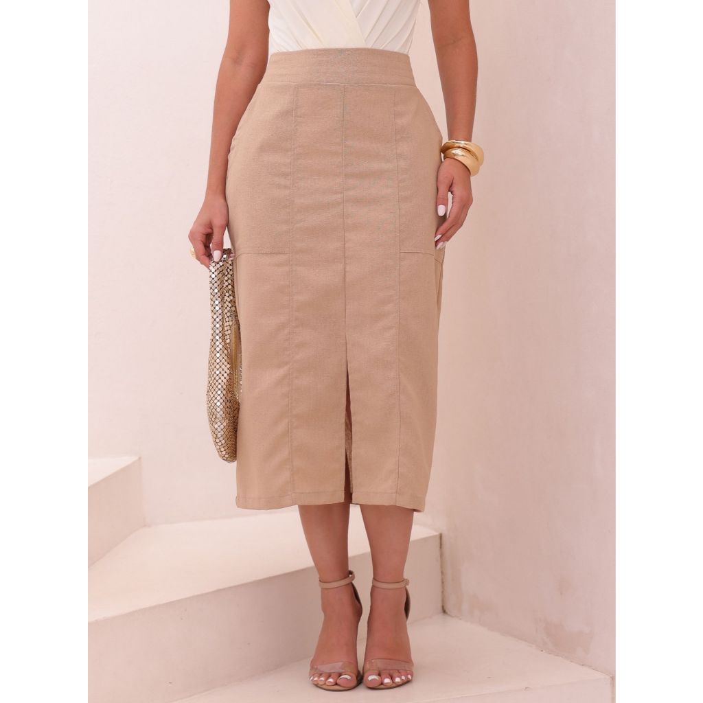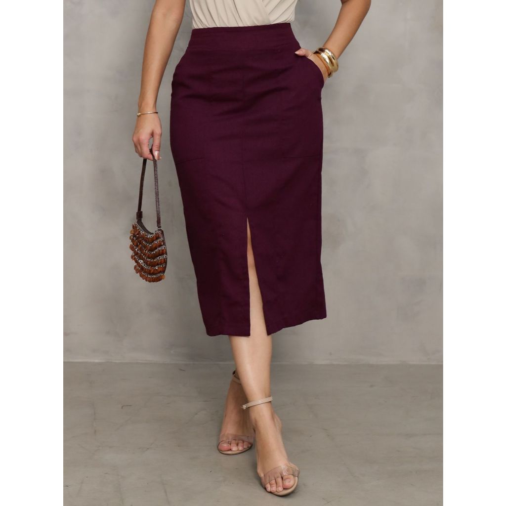 Saia Midi Clássica com Fenda Moderna e Bolsos