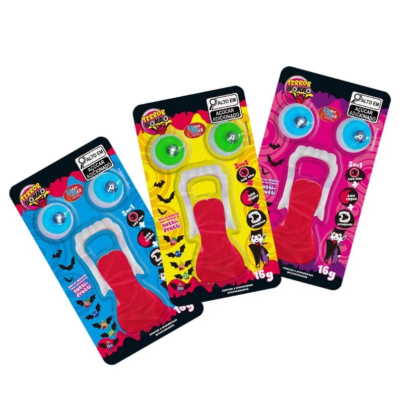 BALA DE GELATINA - GOMA/ TERROR BOKAO 20UN × 16G - SABOR tutti-frutti