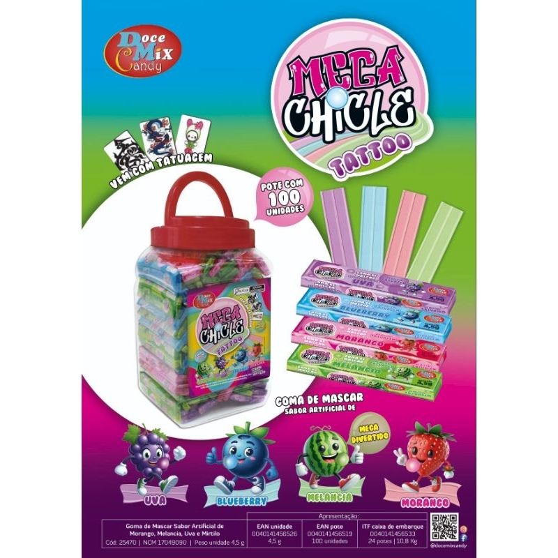 GOMA DE MASCAR MEGA CHICLETAO POTE C/ 100 UN × 4,5G - Doce mix candy