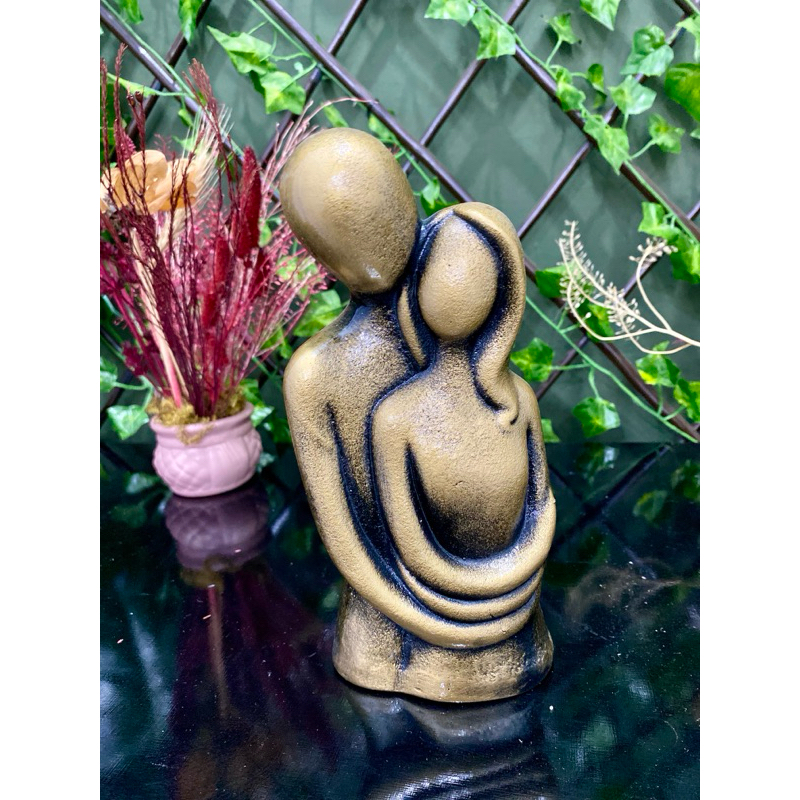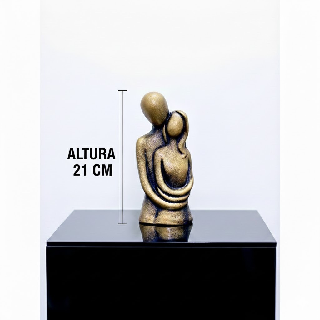 ESTATUETA CASAL ABRAÇADO MODERNO ELEGANTE DOURADO ENVELHECIDO LUXO DECORAÇÃO