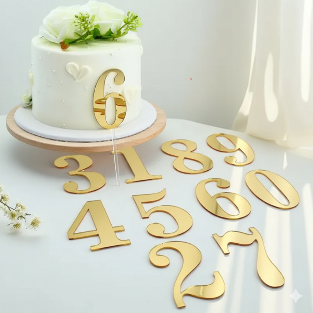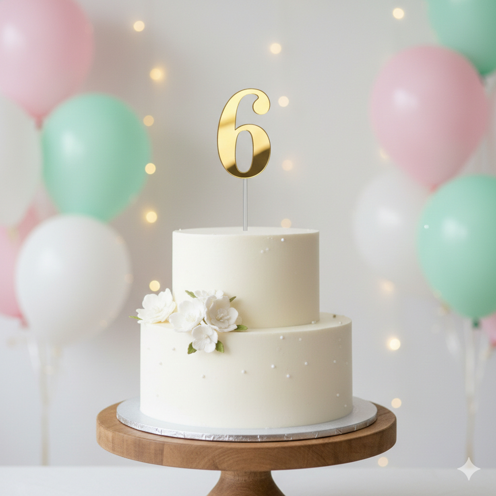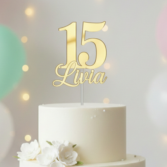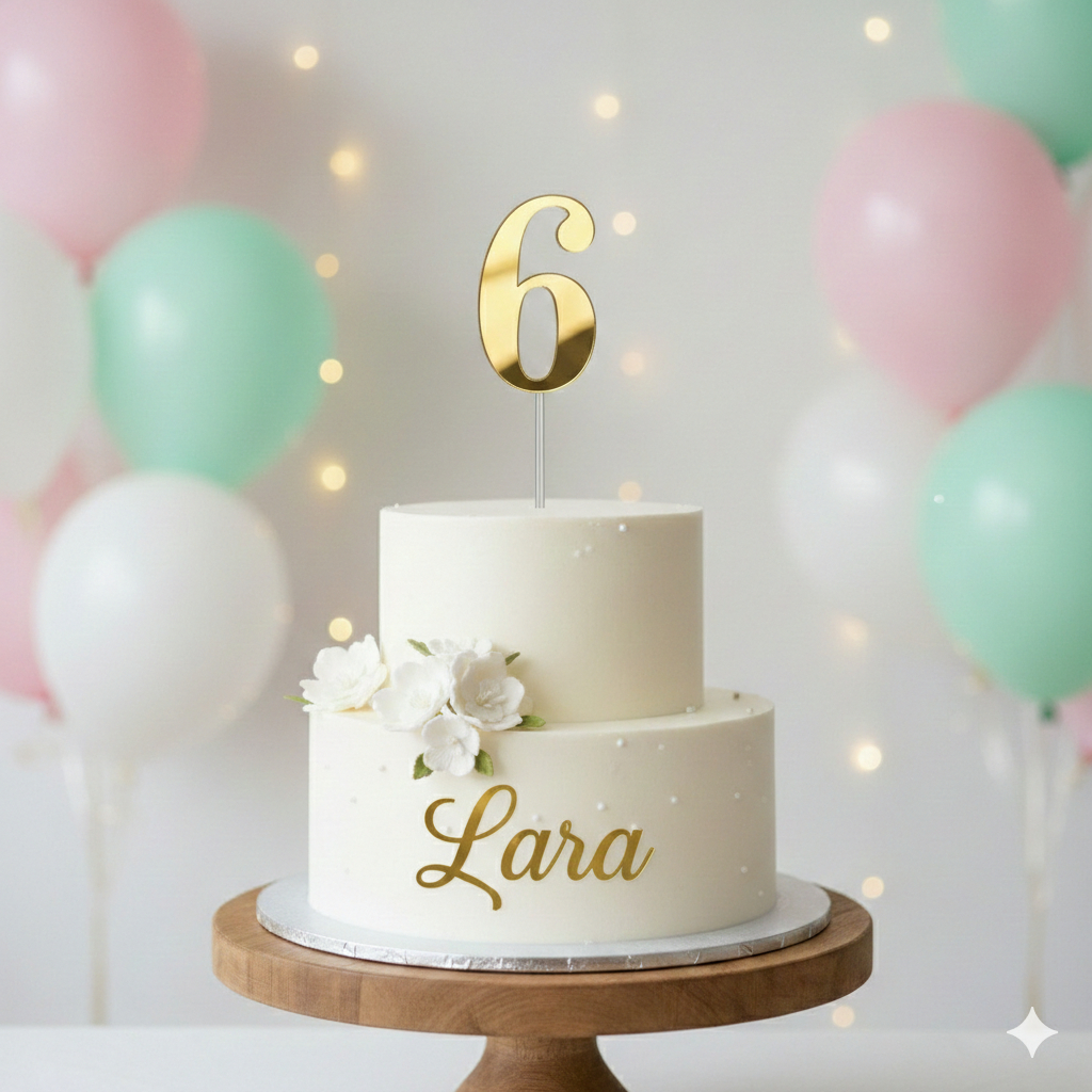 Topo de Bolo Nome + Número em Acrílico Espelhado Personalizado para Aniversário