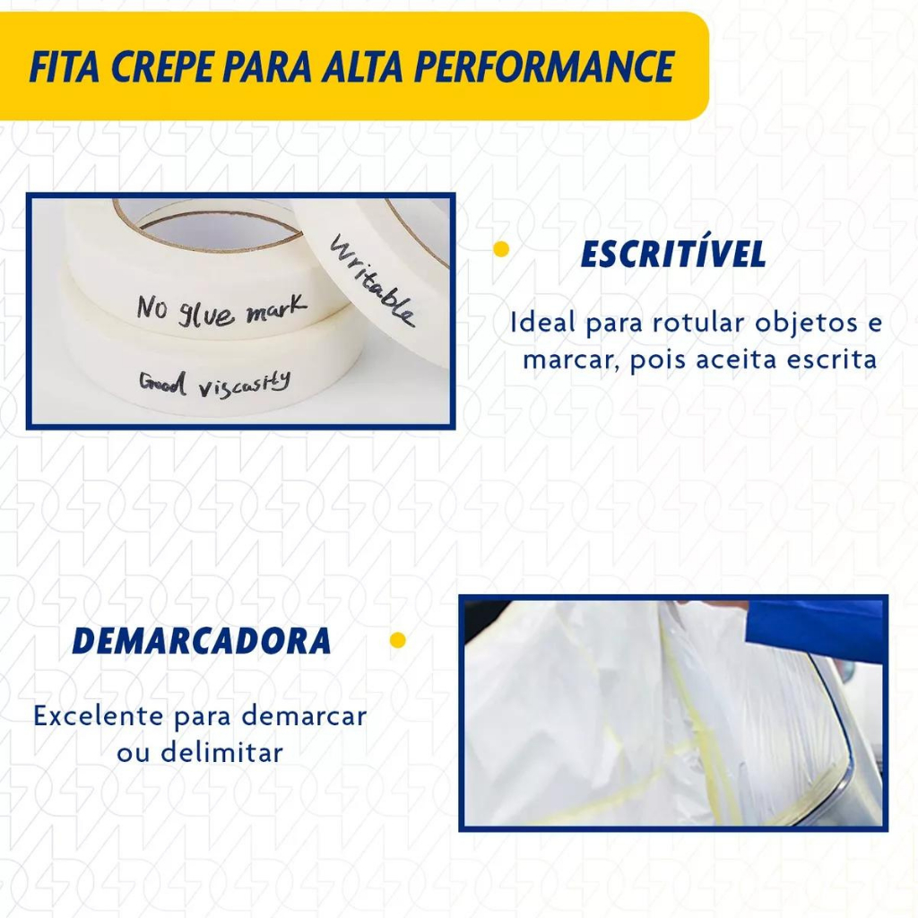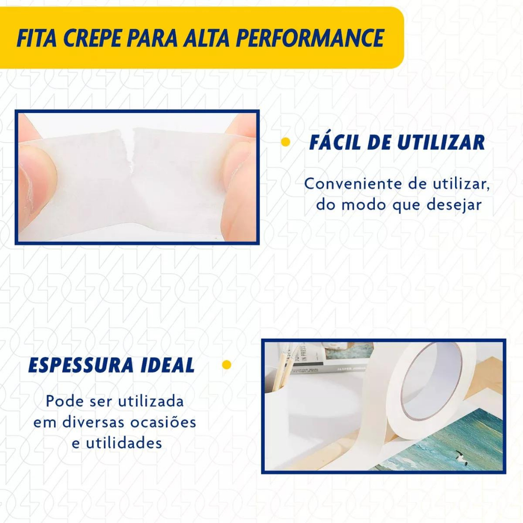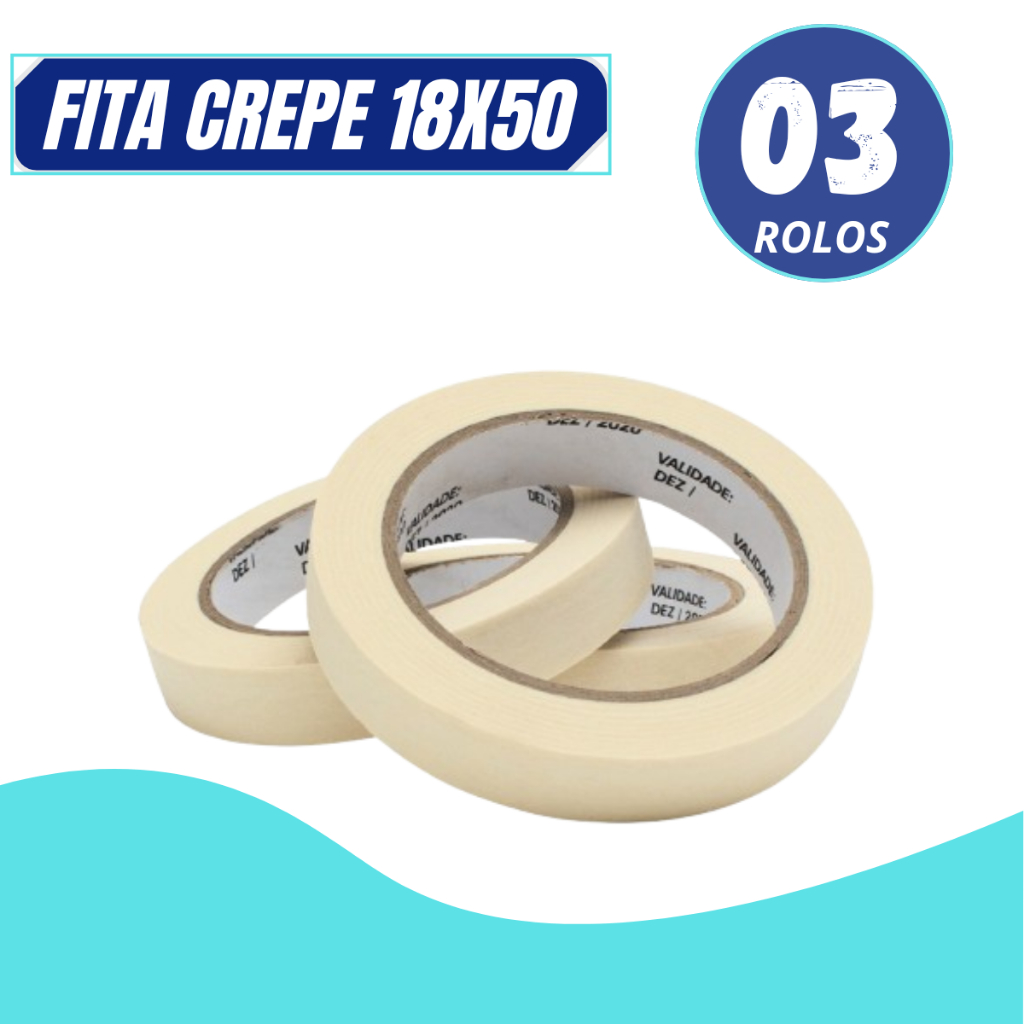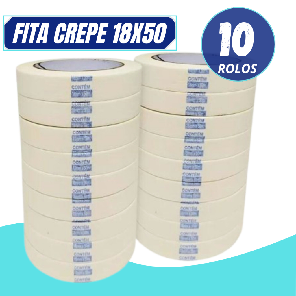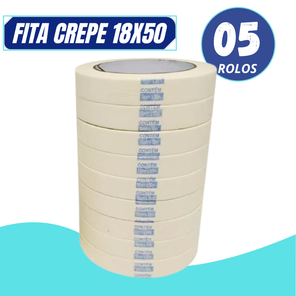 FITA CREPE BRANCA USO GERAL PREMIUM 18MM X 50 METROS - KIT 05 UNIDADES
