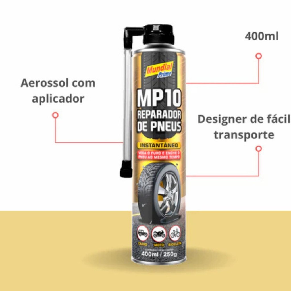 Reparador Instantâneo de Pneus Veda e Enche MUNDIAL PRIME MP10 SOS Pneu Carro Moto Bicicleta