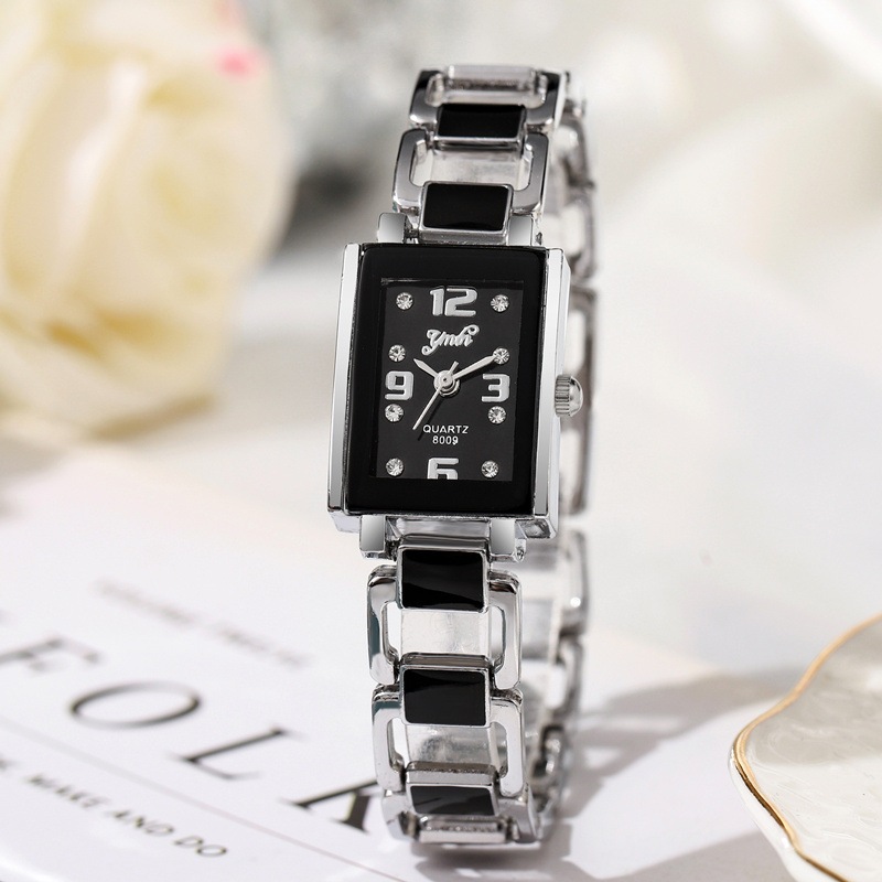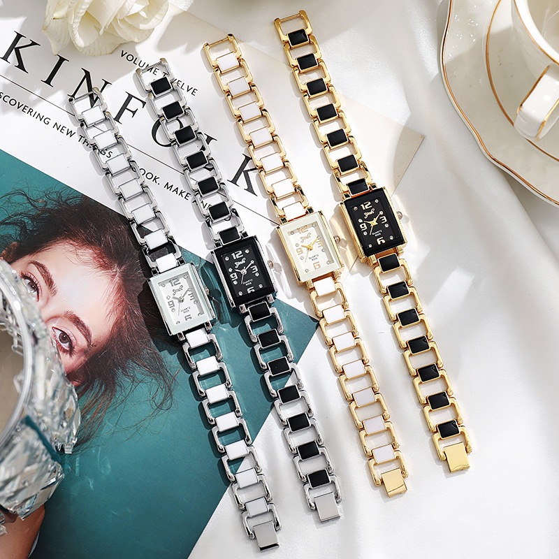 Relógio Feminino Quadrado Casual Digital Ponto Diamante Pulseira De Cerâmica Simples