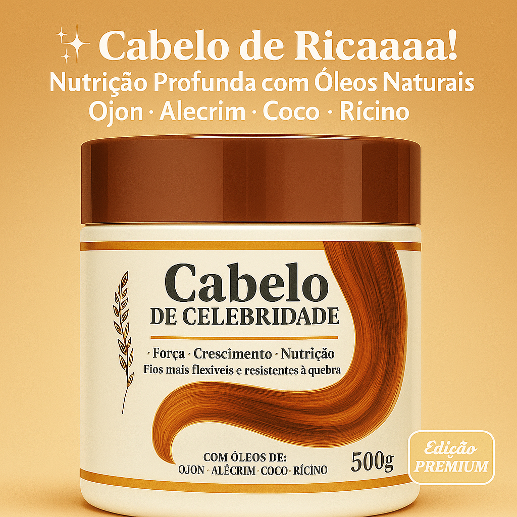 Cabelo de Celebridade - Máscara Capilar 500g | Óleos de Ojon, Alecrim, Coco e Rícino | Brilho e Força | Cabelo de Rica