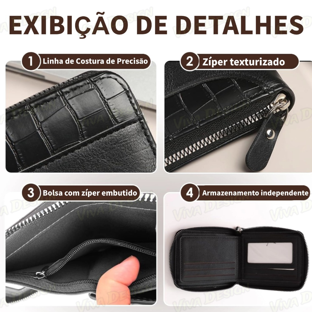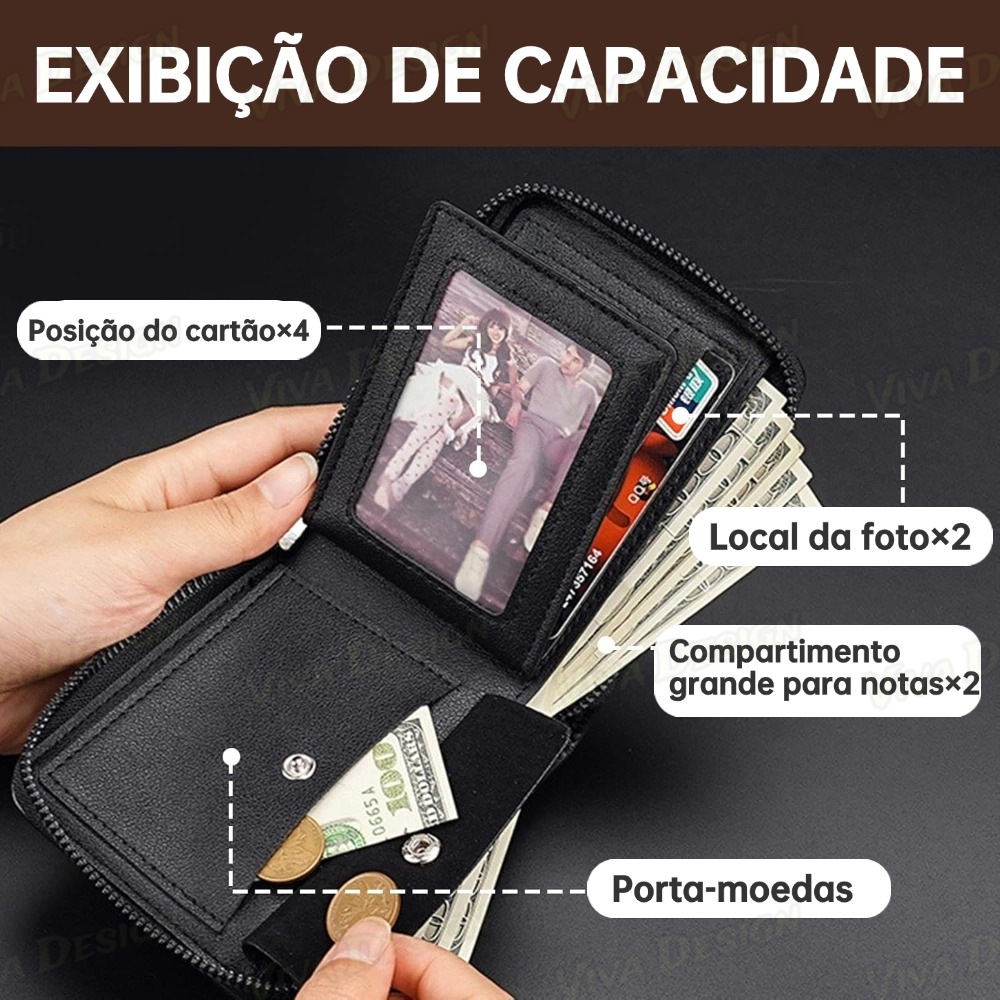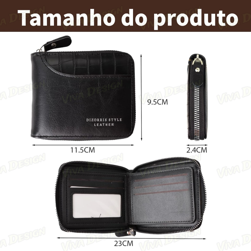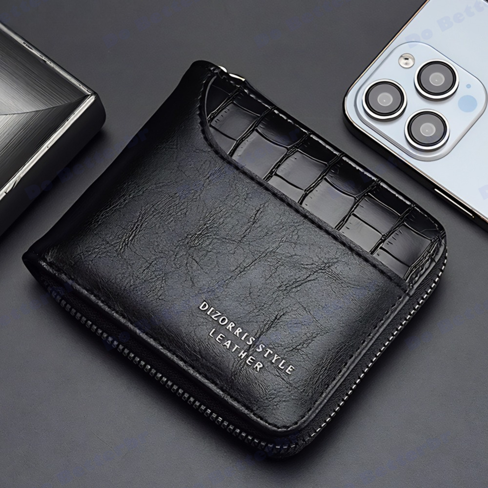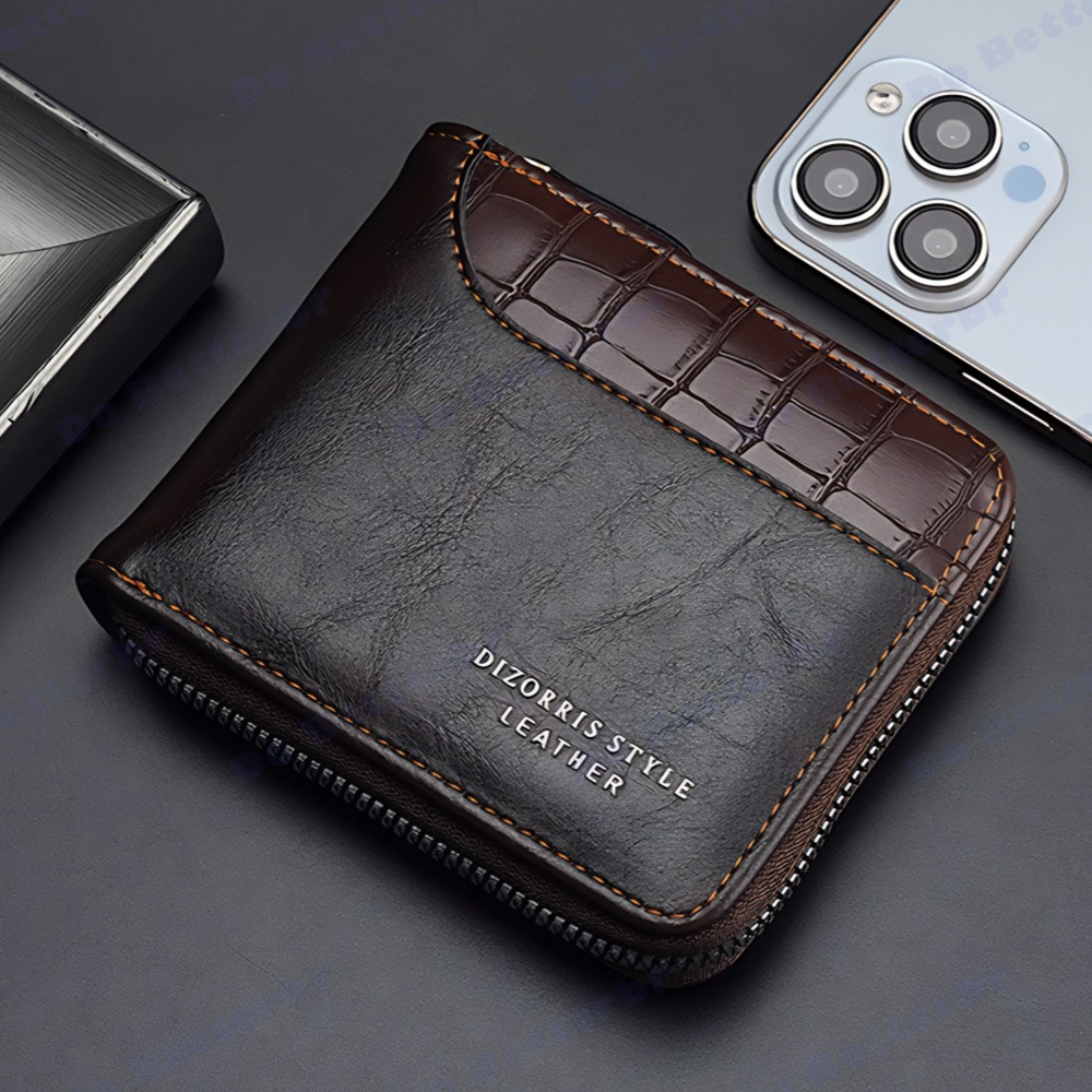 Carteira Curta Masculina Com Padrão De Pedra-Bolso Para Moedas Zíper Vários Cartões E Bordas Costuradas--BT