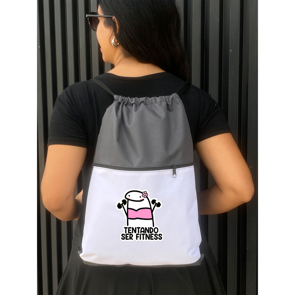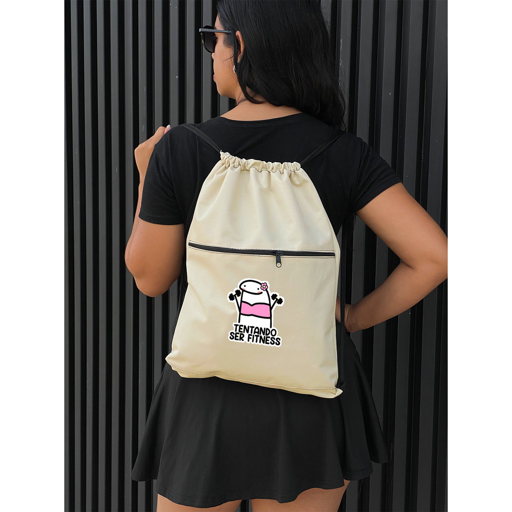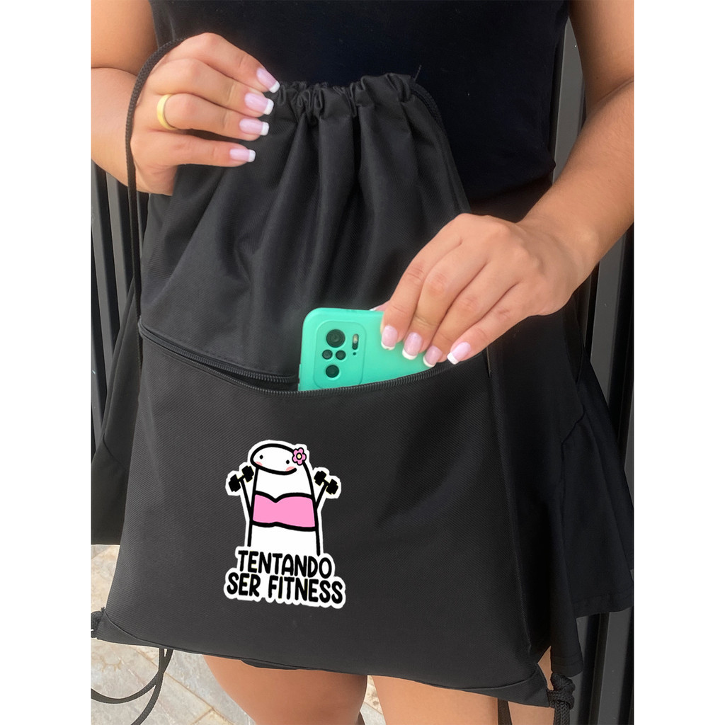 Mochila Saco Corda TENTANDO SER FITNESS Academia Esportiva Gym Bag Fitness Unissex Cordão Preto Sack Outline Nylon Resistente Sacochila