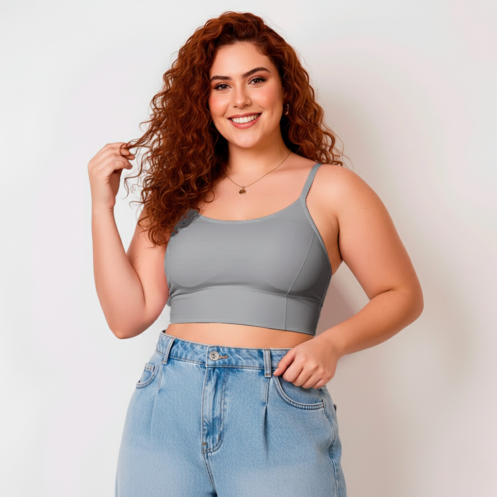 Top Plus Size Academia Fitness C/ Alça Regulável E Bojo 9156