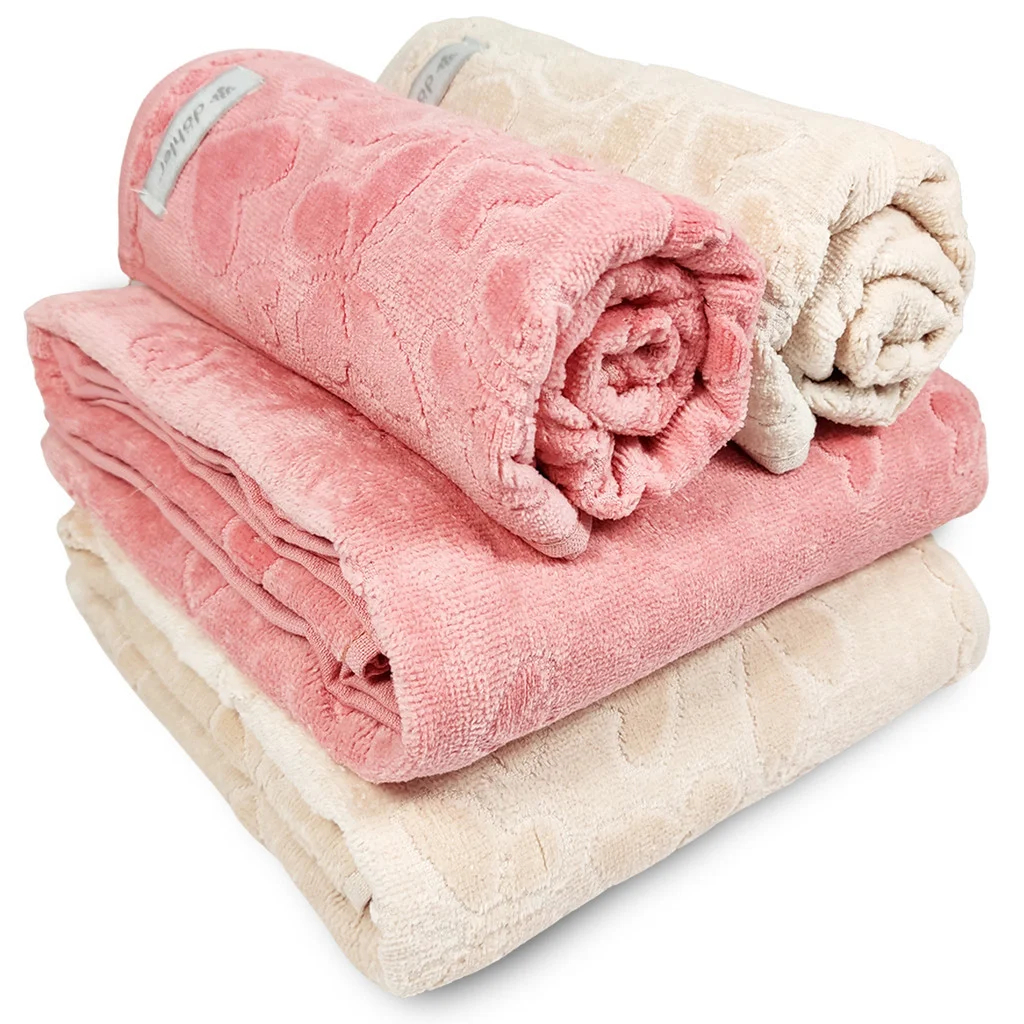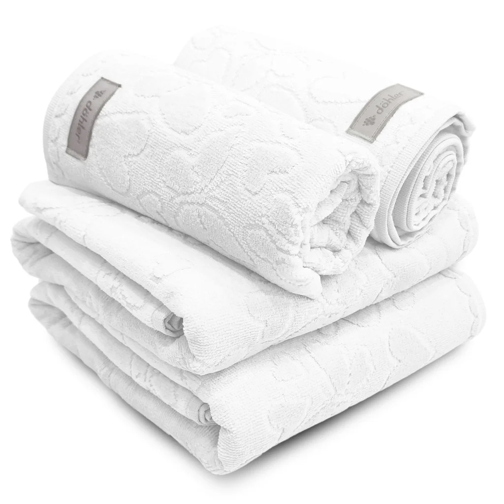 Jogo/Kit 2 Toalhas de Banho Romance Döhler + 2 Toalhas de Rosto Aveludada Macia 100% Algodão 400g/m²