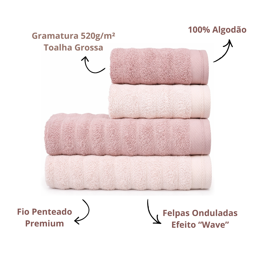 Jogo/Kit 2 Toalhas de Banho + 2 Toalhas de Rosto Fio Penteado Grossa 100% Algodão 520g/m² Atlântica