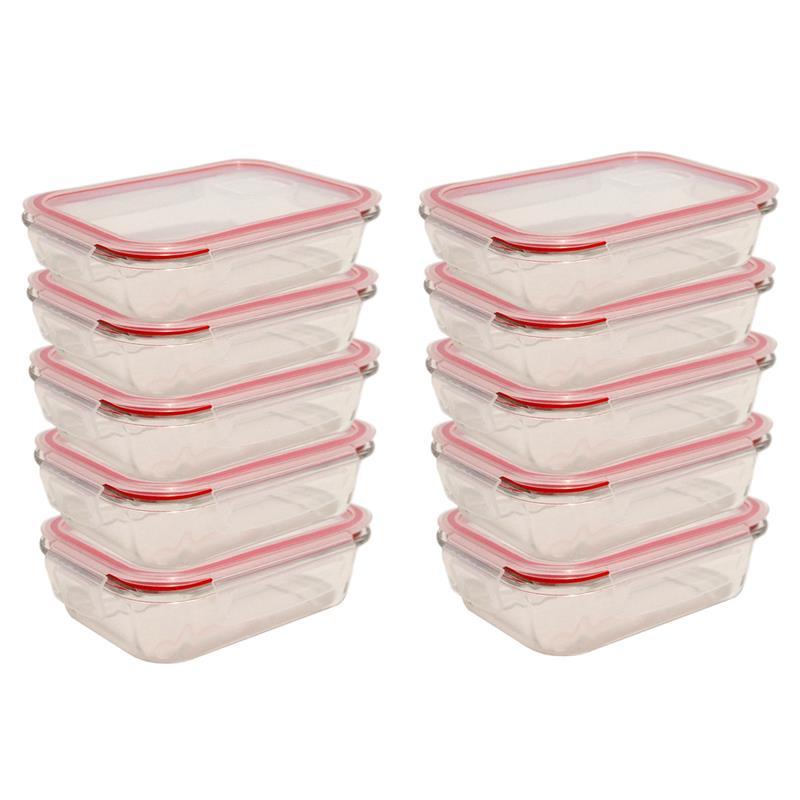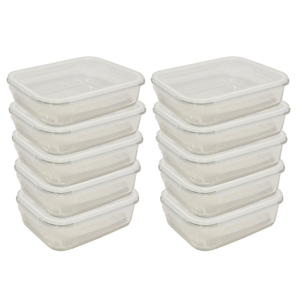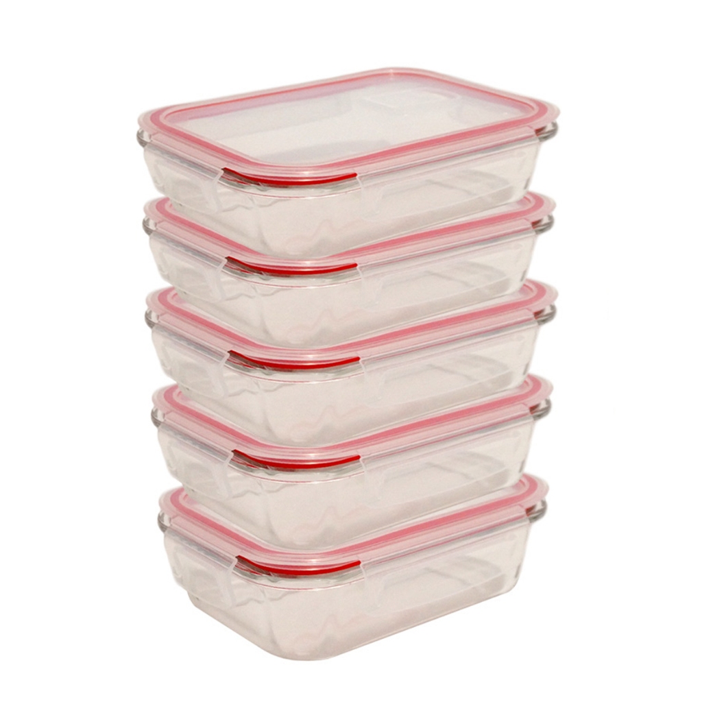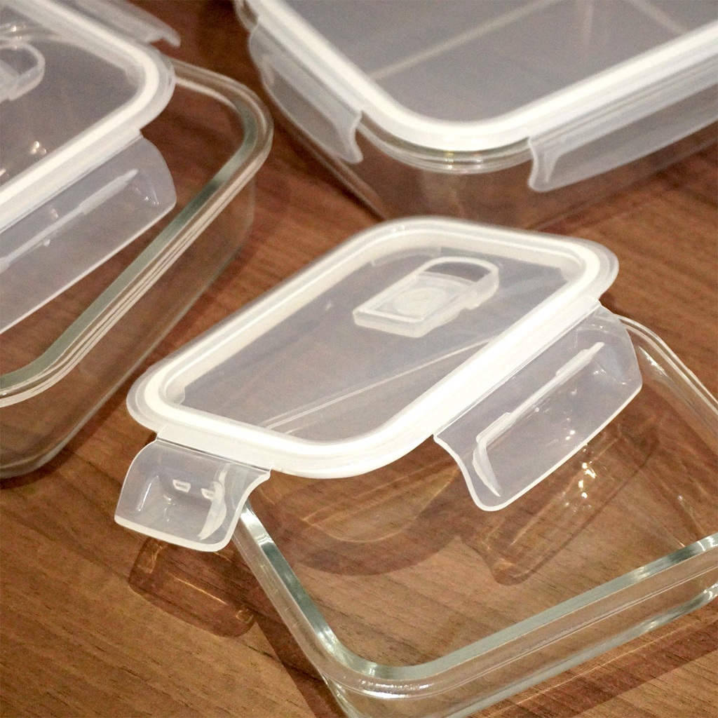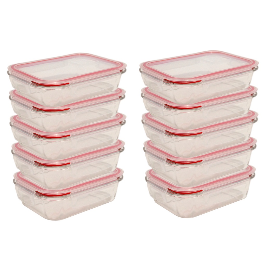 Kit 5 ou 10 Potes Herméticos de Vidro Retangular com 4 Travas - Bela Flor