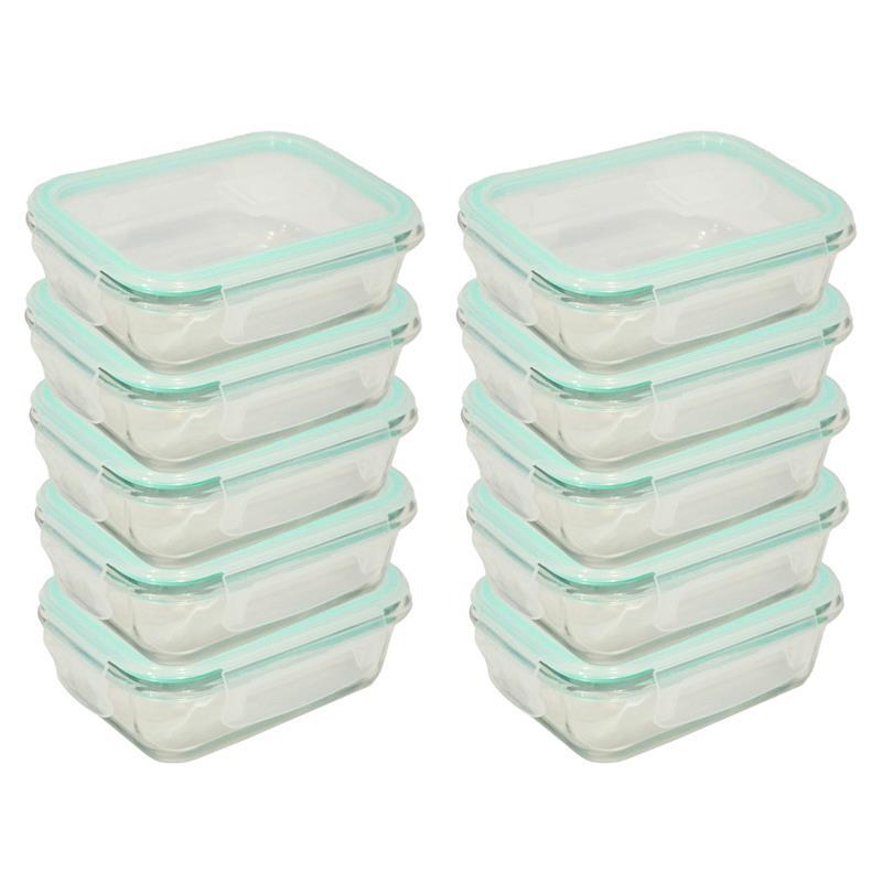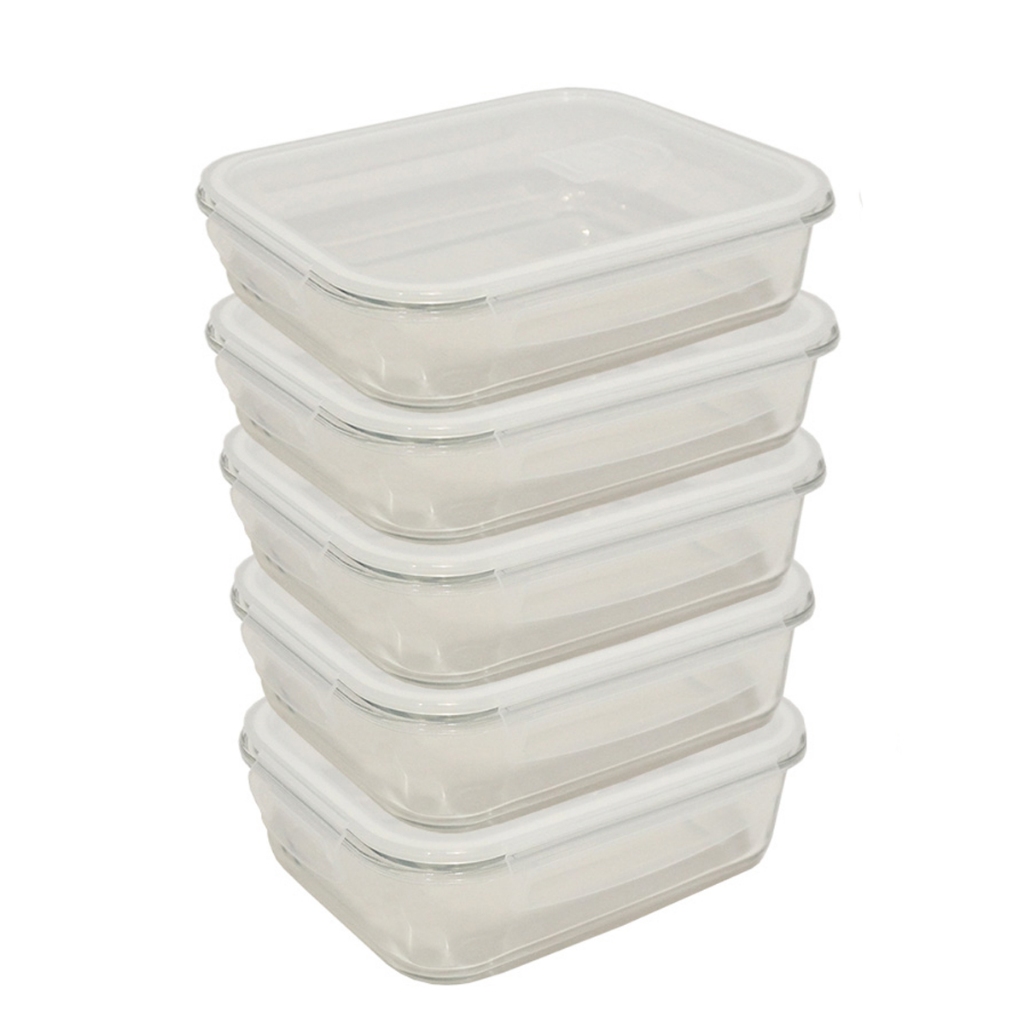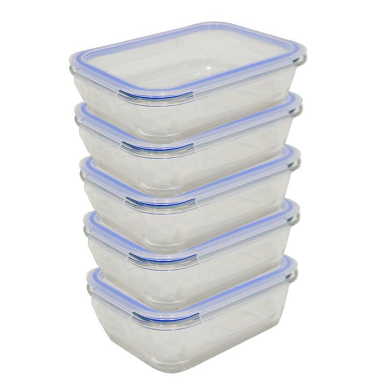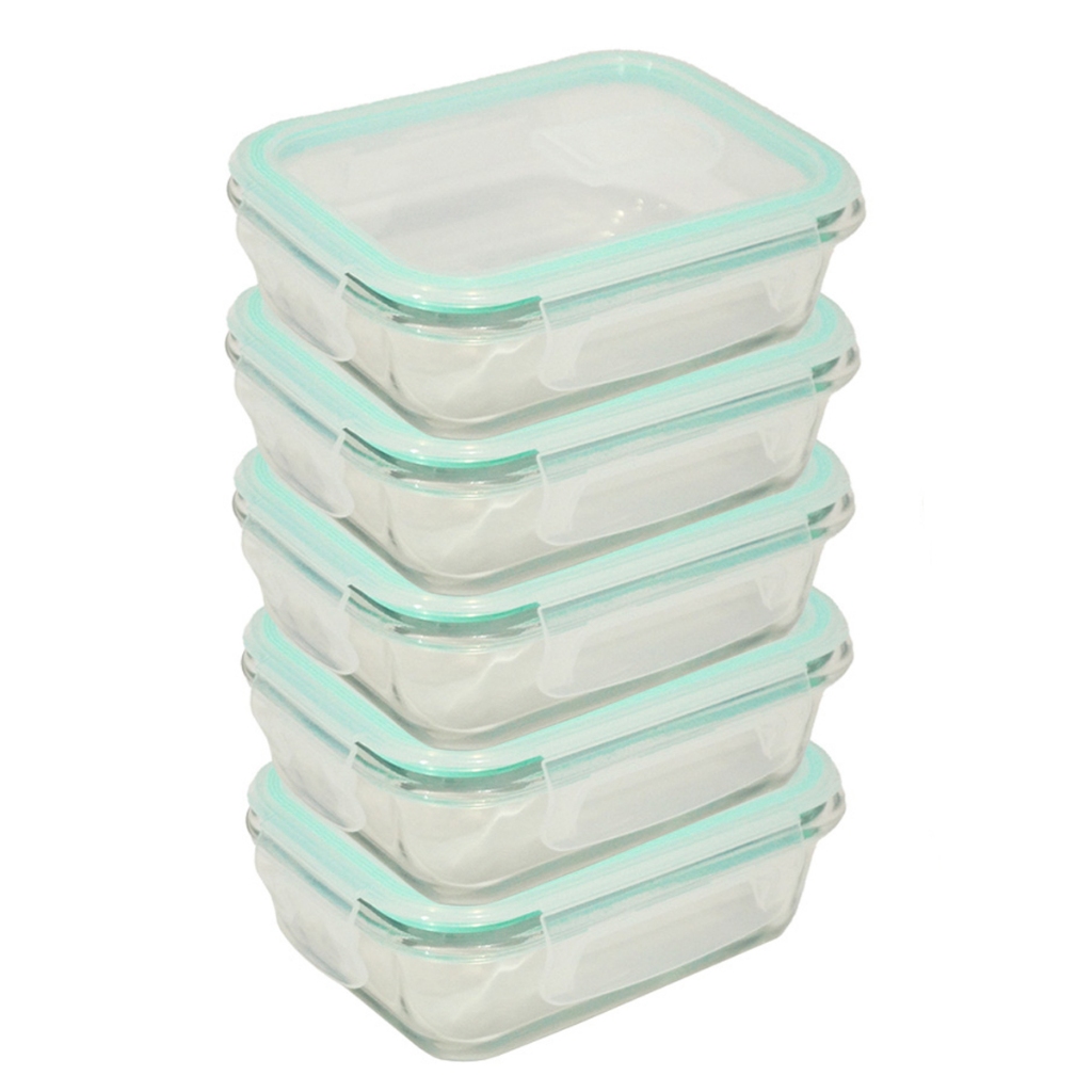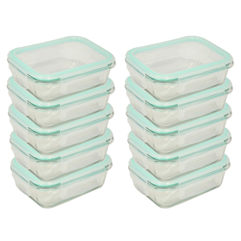 Kit 5 ou 10 Potes Herméticos de Vidro Retangular com 4 Travas - Bela Flor