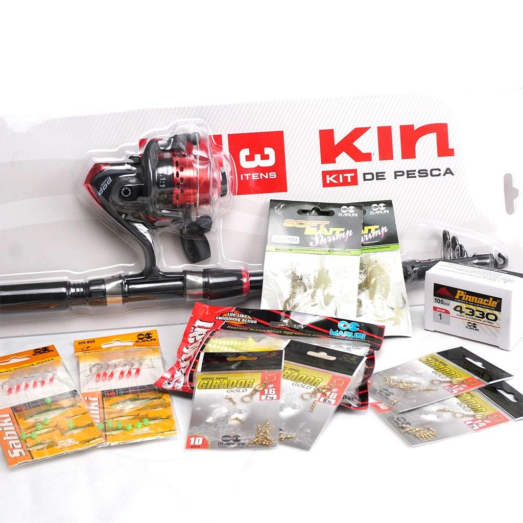 Kit De Pesca Vara com Molinete, Linha e 168 Acessórios Kin - Maruri