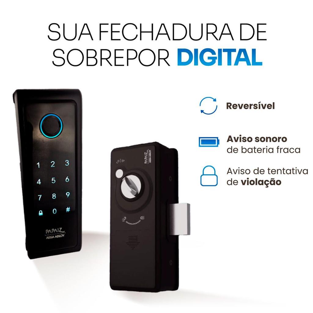 Fechadura Eletrônica Digital Smart Lock com Biometria de Sobrepor SL140B - Papaiz