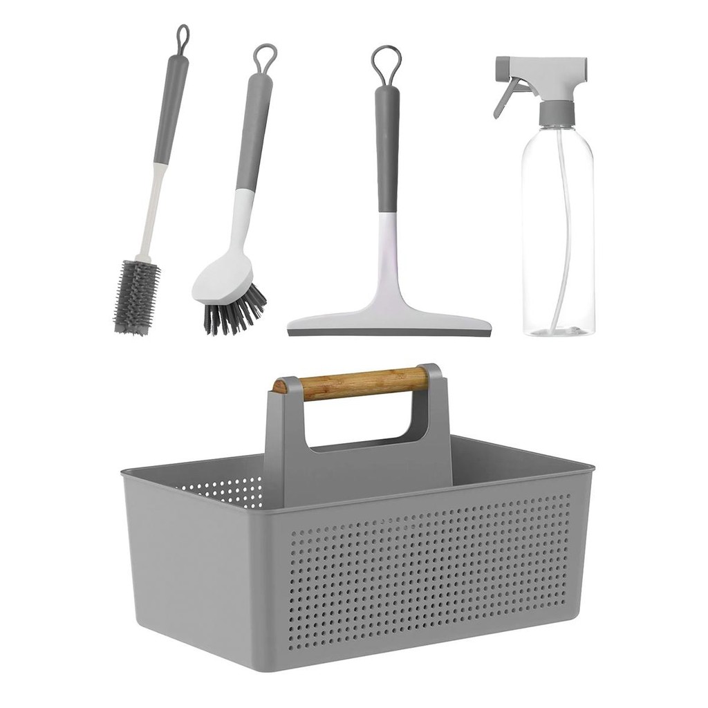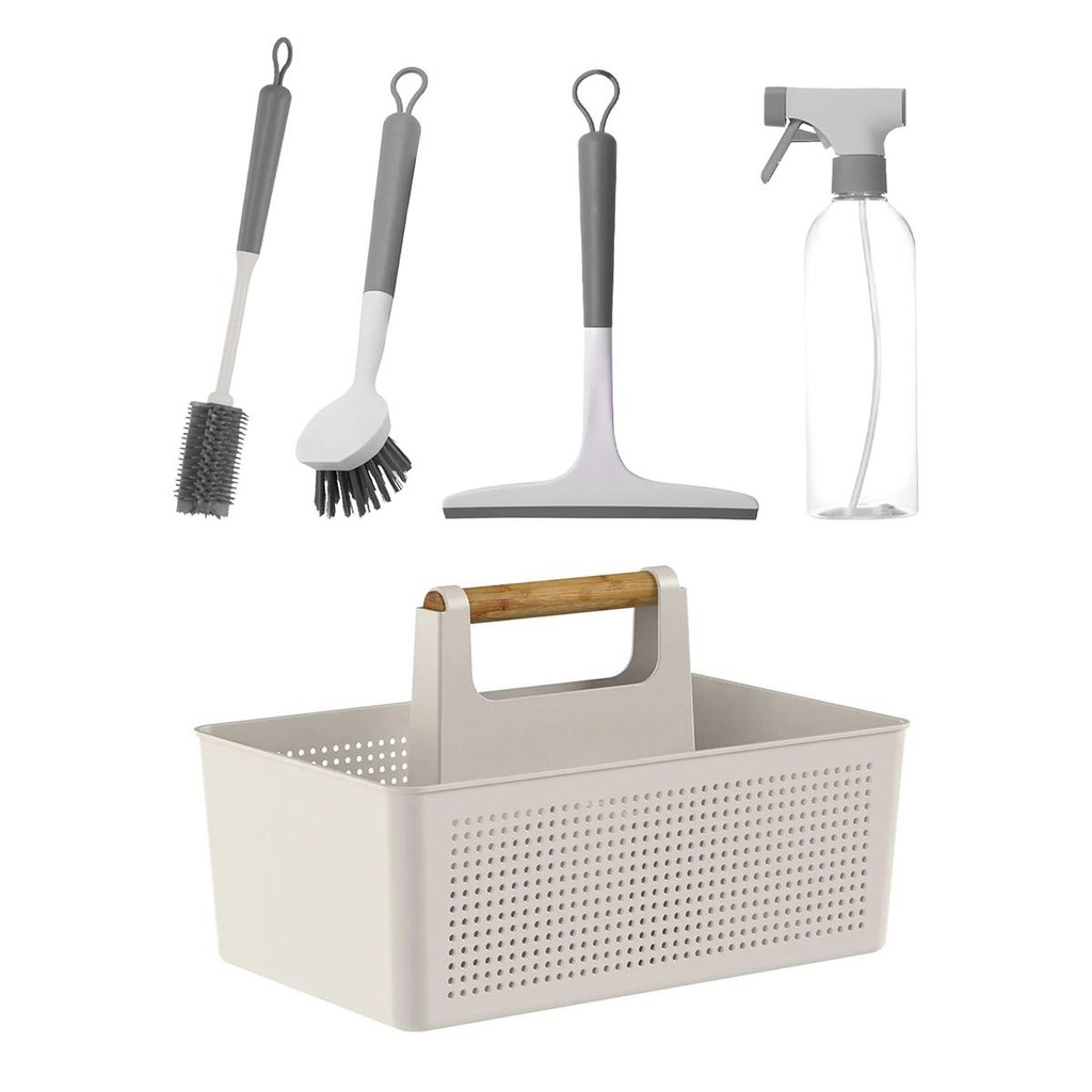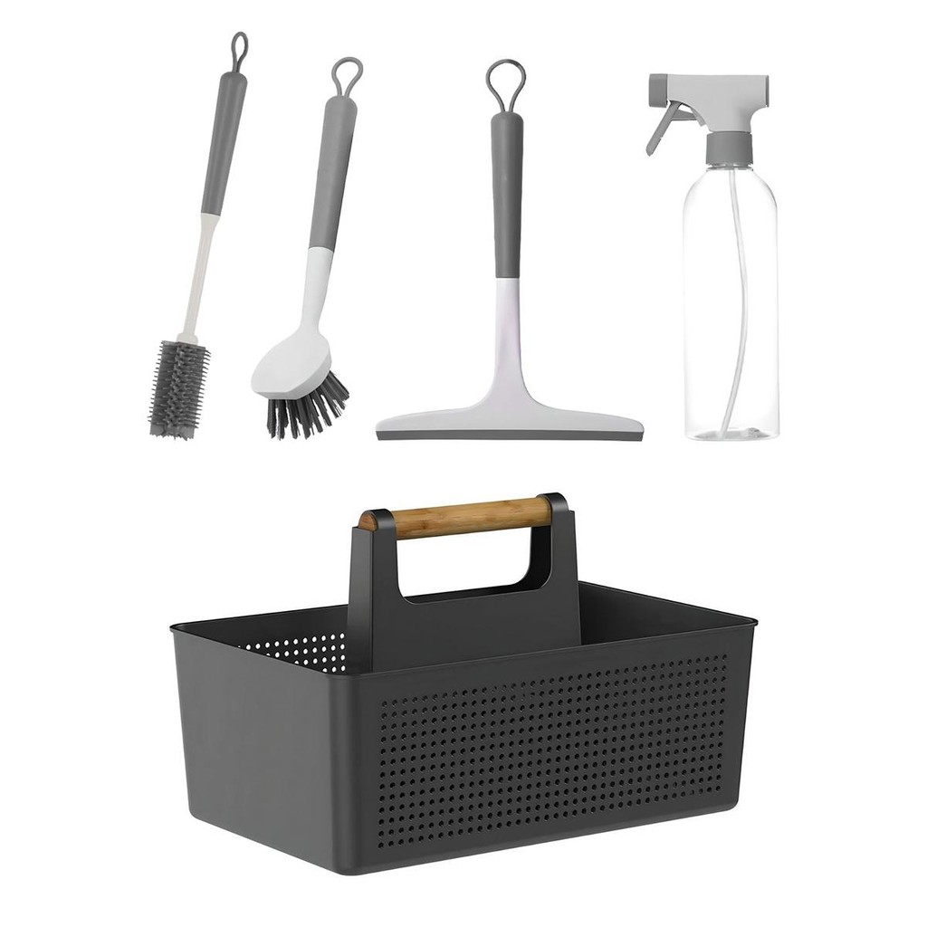 Kit Multiuso 2 Escovas de Limpeza + Rodo + Borrifador + Organizador Flow - Ou