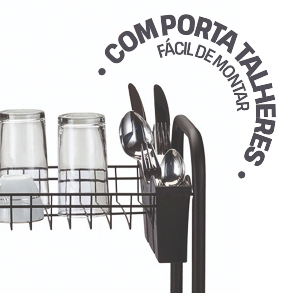 Escorredor de Louças Gaivota Black Com Porta Talheres– Organização e Estilo Arthi