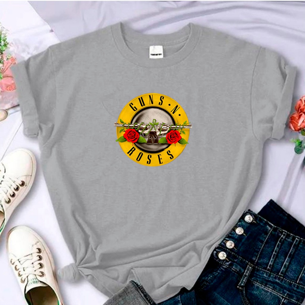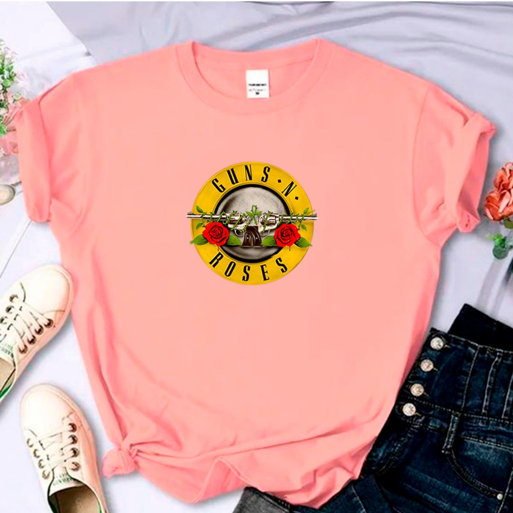 Camiseta Feminina T Shirt Algodão Guns N Roses Banda Rock Musica Armas E Rosas