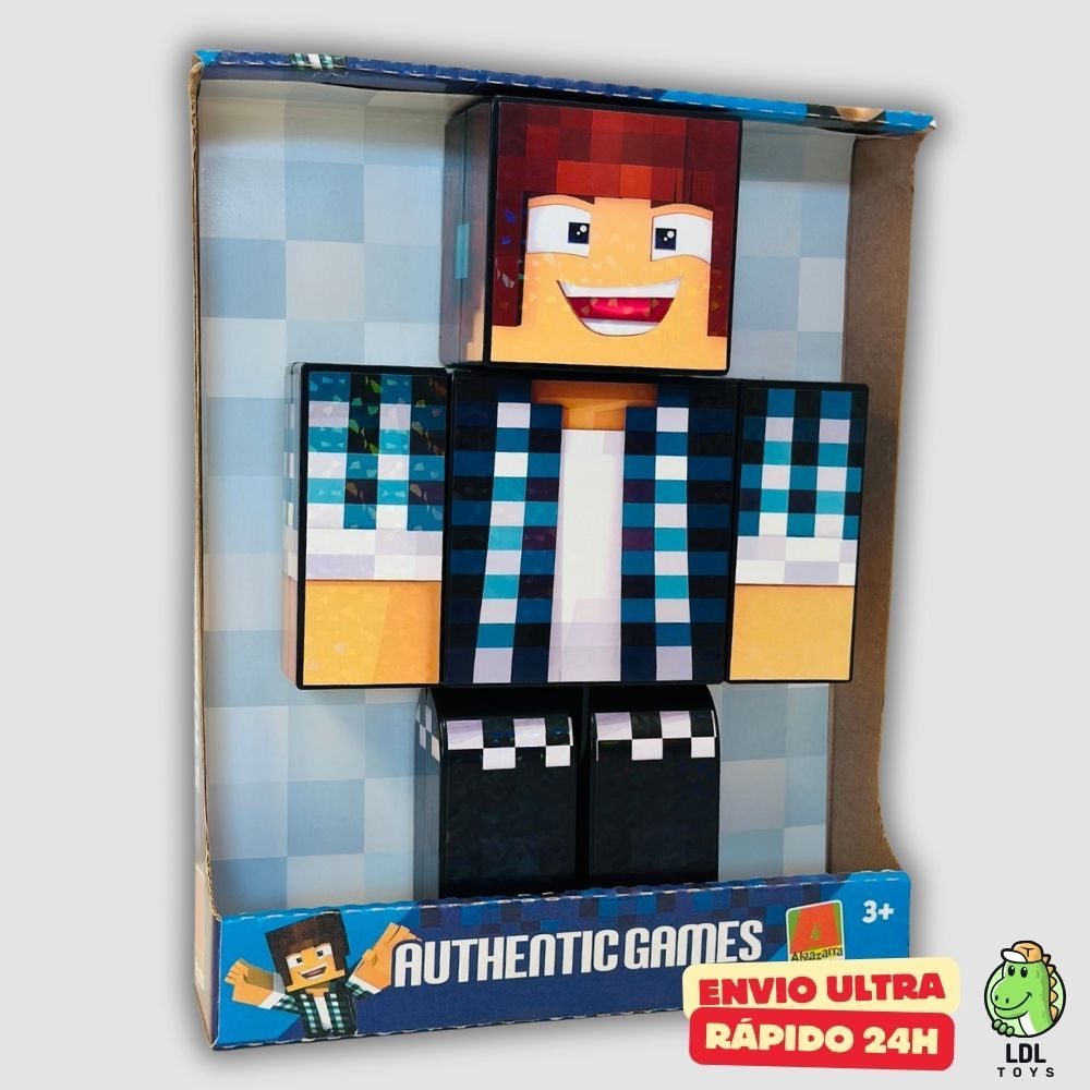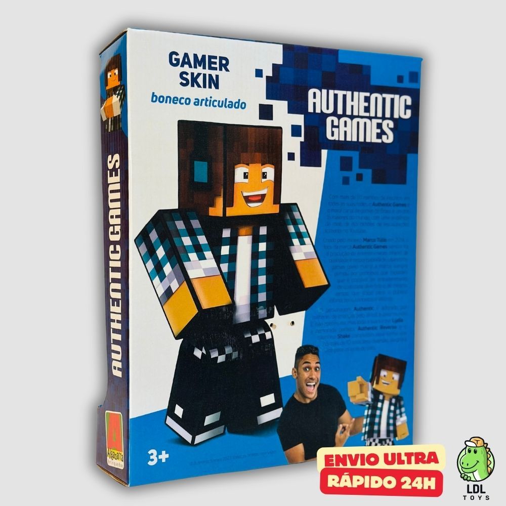 Boneco 25cm Authentic Games Gamer Skin Articulado + 3 Chaveiros Youtuber Algazarra