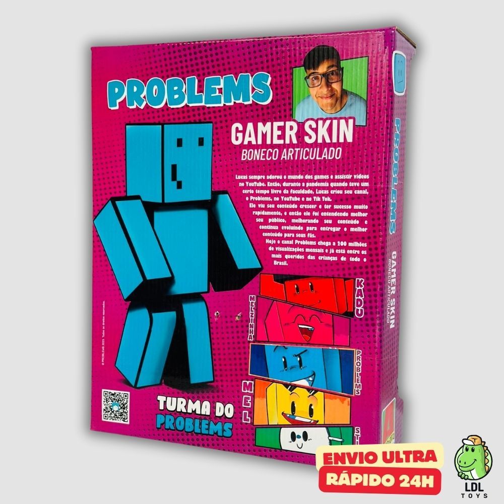 Boneco Youtuber Turma do Problems Articulado Gamer Melzinha 35cm Algazarra