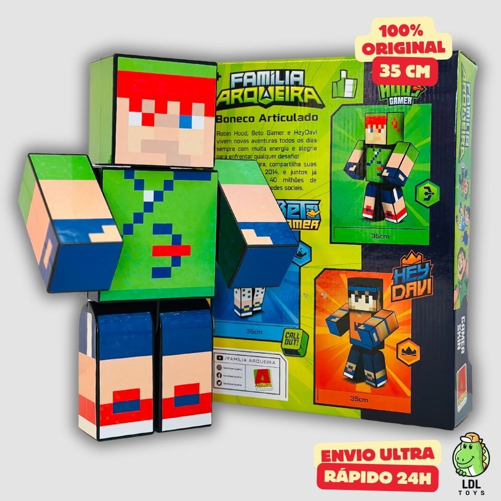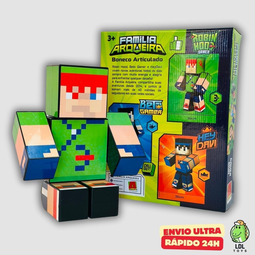 Boneco Youtuber Familia Arqueira Articulado Gamer Robin Hood 35cm Algazarra