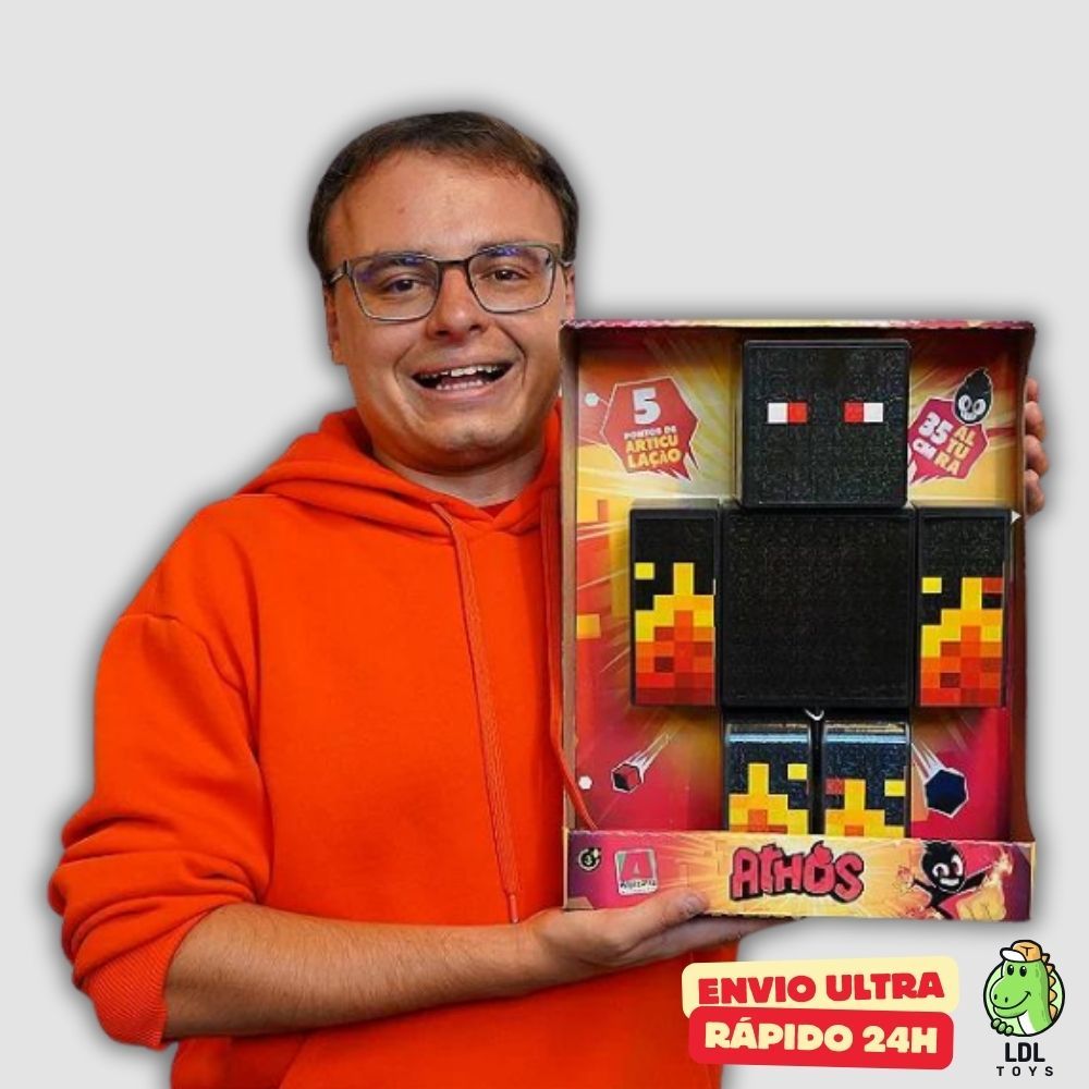 Kit 2 Bonecos 35cm Athos + Lopers Gamer Articulado + 6 Chaveiros Youtuber Algazarra