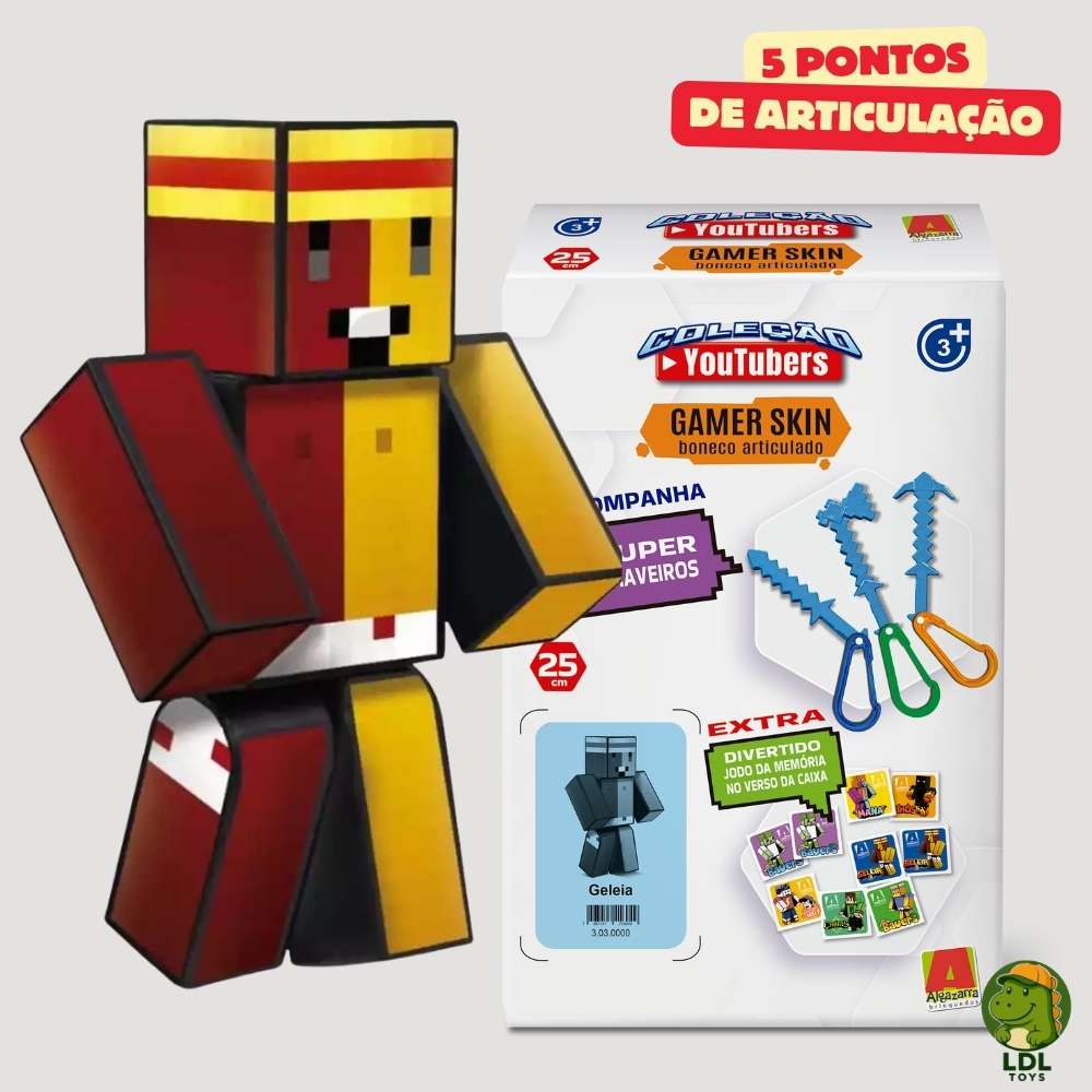 Boneco Geleia 35cm Articulado Acompanha 3 Chaveiros Youtuber Original Algazarra