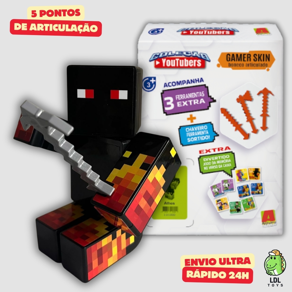 Kit 3 Bonecos Athos + Cadres + Mana Gamer Articulados Youtuber 15cm Algazarra