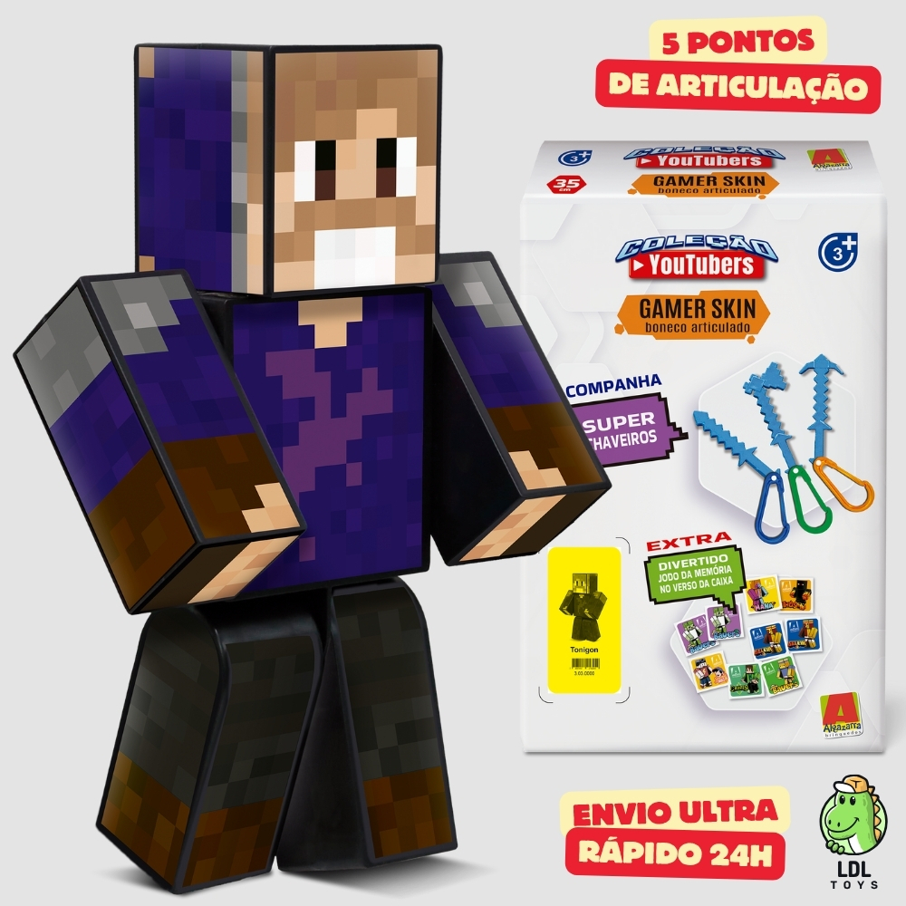 Boneco Tonigon 35cm Articulado Acompanha 3 Chaveiros Youtuber Original Algazarra