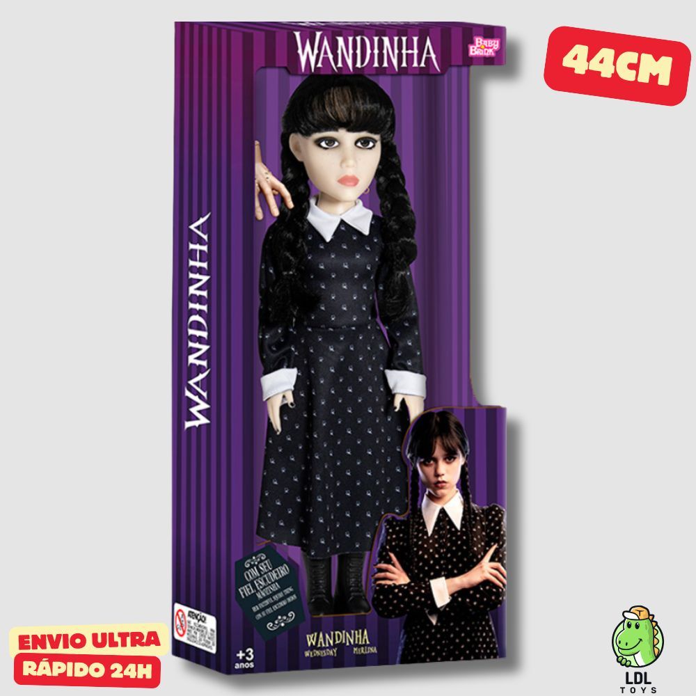 Boneca Wandinha Addams + Mãozinha 44cm BabyBrink Original Articulada Vandinha