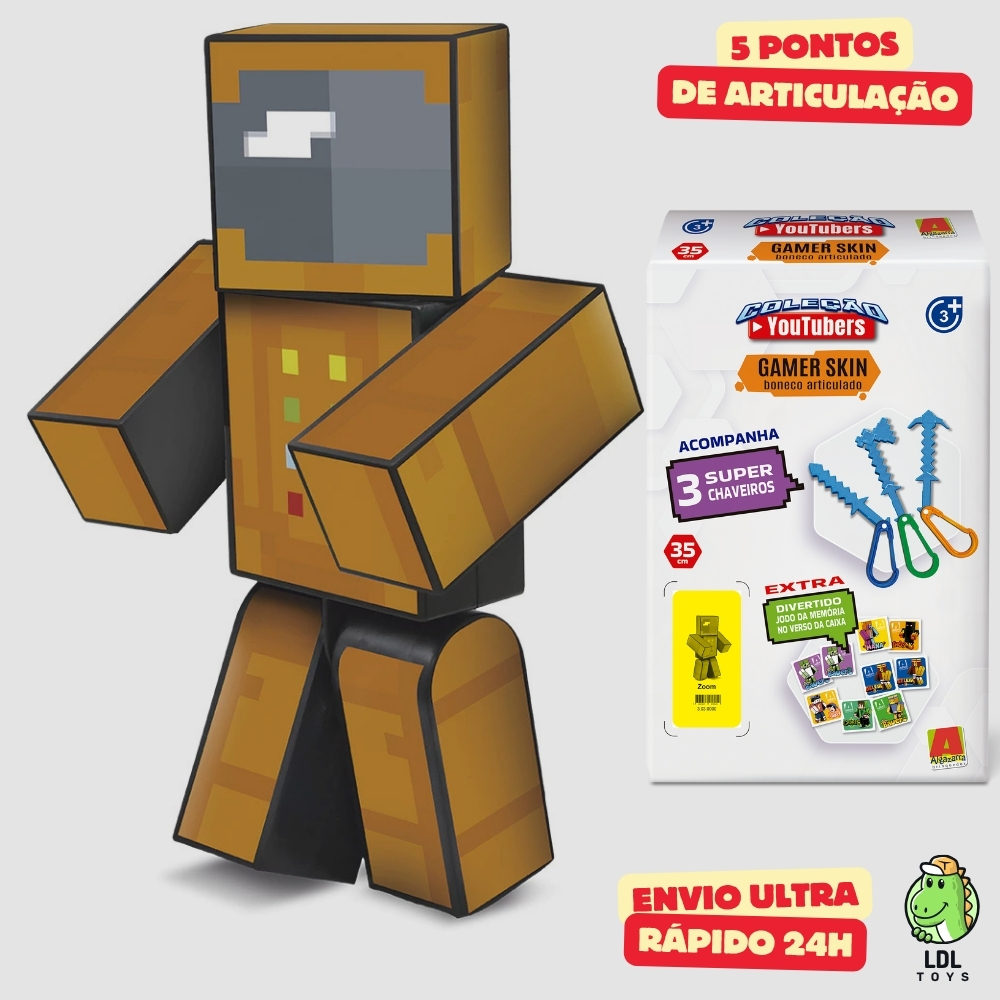 Boneco Zoom 35cm Articulado Acompanha 3 Chaveiros Youtuber Original Algazarra