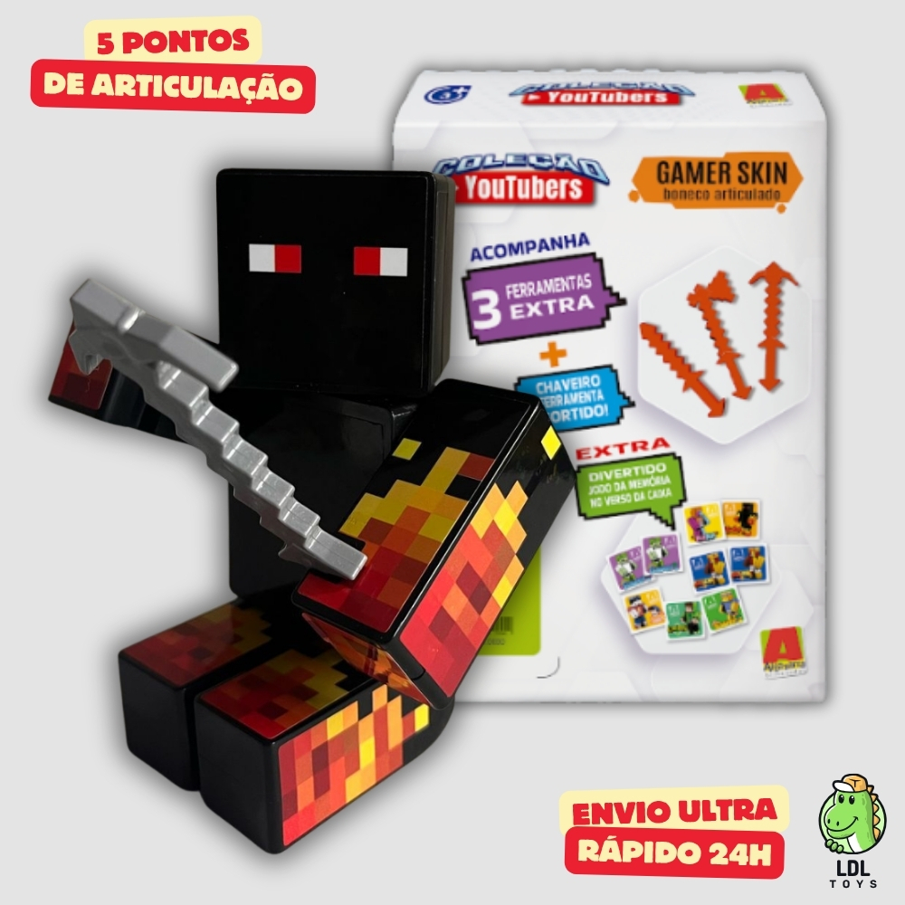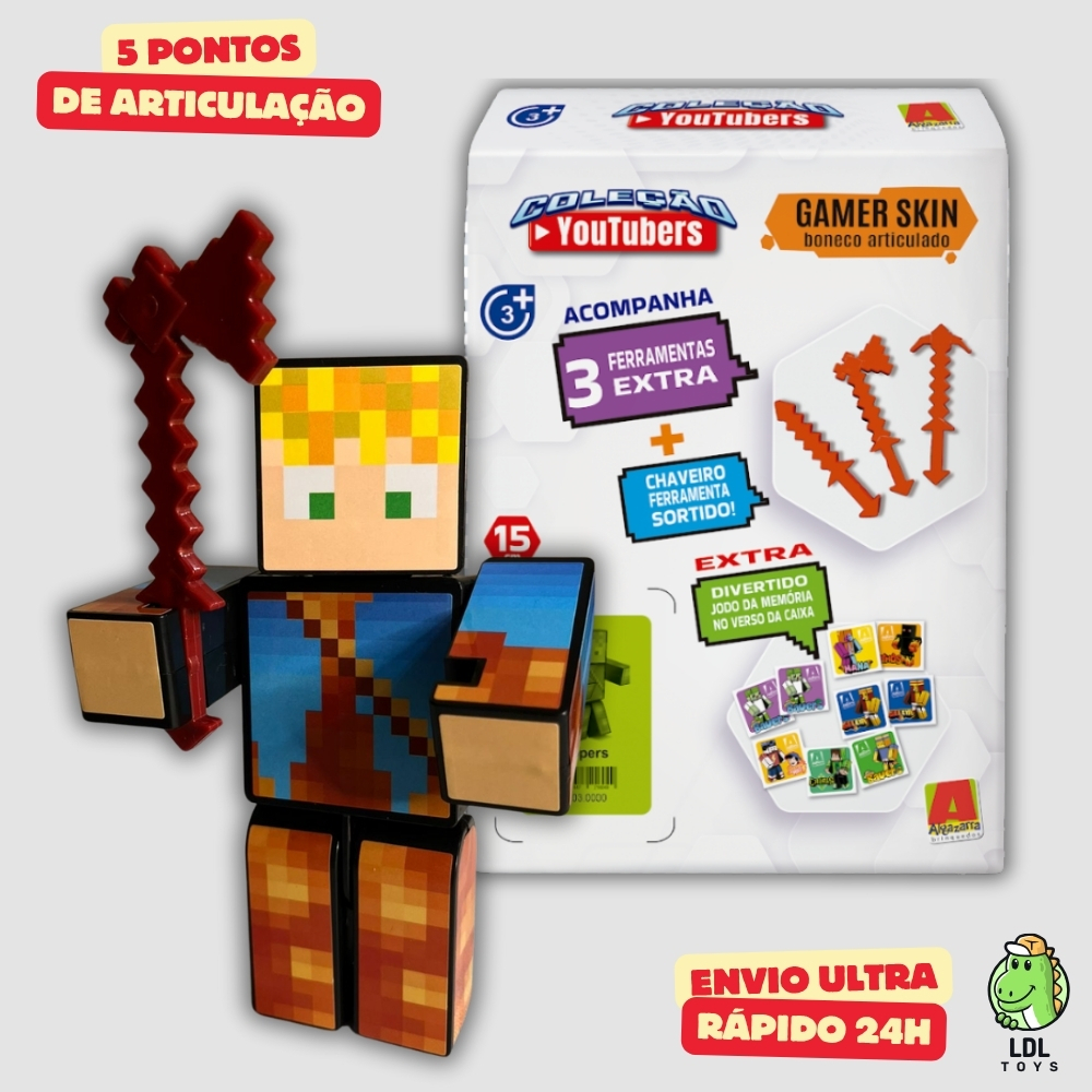 Kit 2 Bonecos 15 cm Athos + Lopers Gamer Articulado + 6 Ferramentas + 2 Chaveiros Youtuber Algazarra