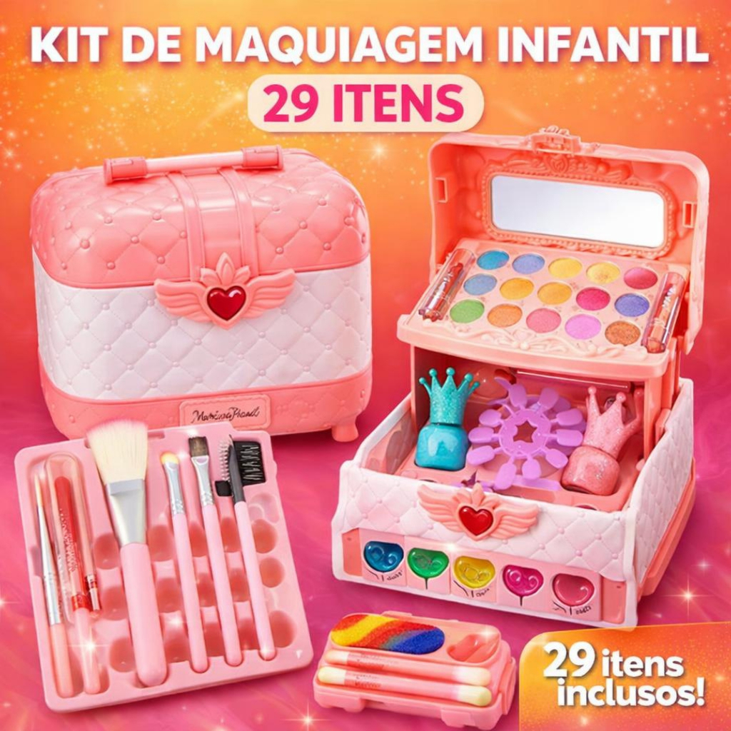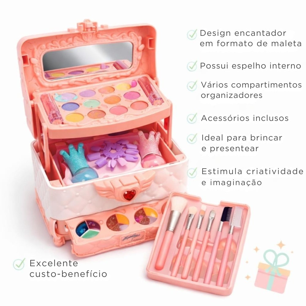Kit Maquiagem Infantil Princesa Maleta Mágica Completa Com Espelho Seguro Brinquedo Menina