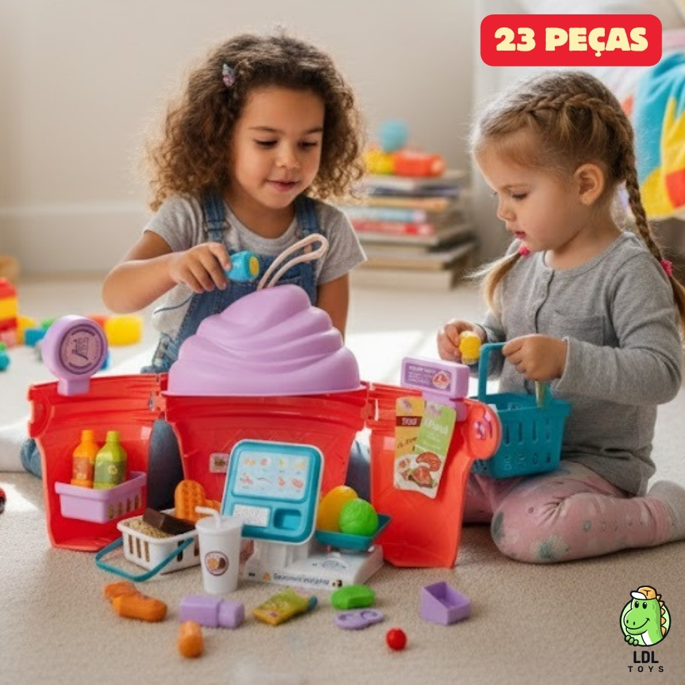 Kit Brinquedo Mini Mercado 23 Peças Infantil 3 em 1 Sorvete Completo Menina Criança Faz De Conta