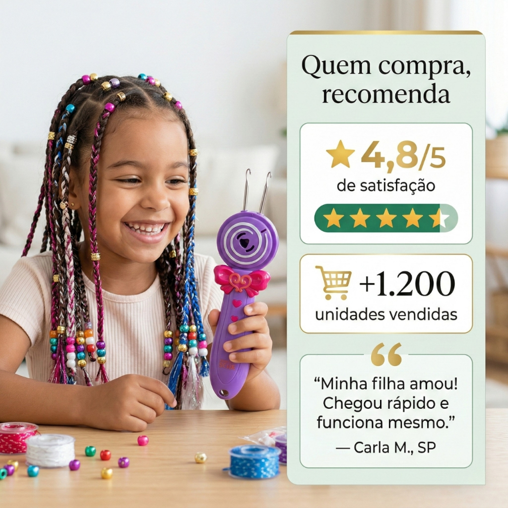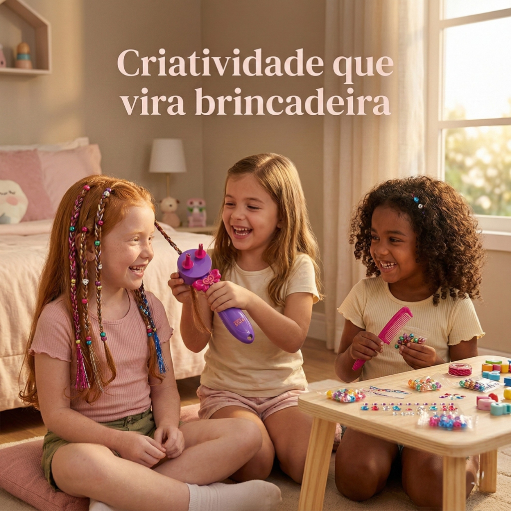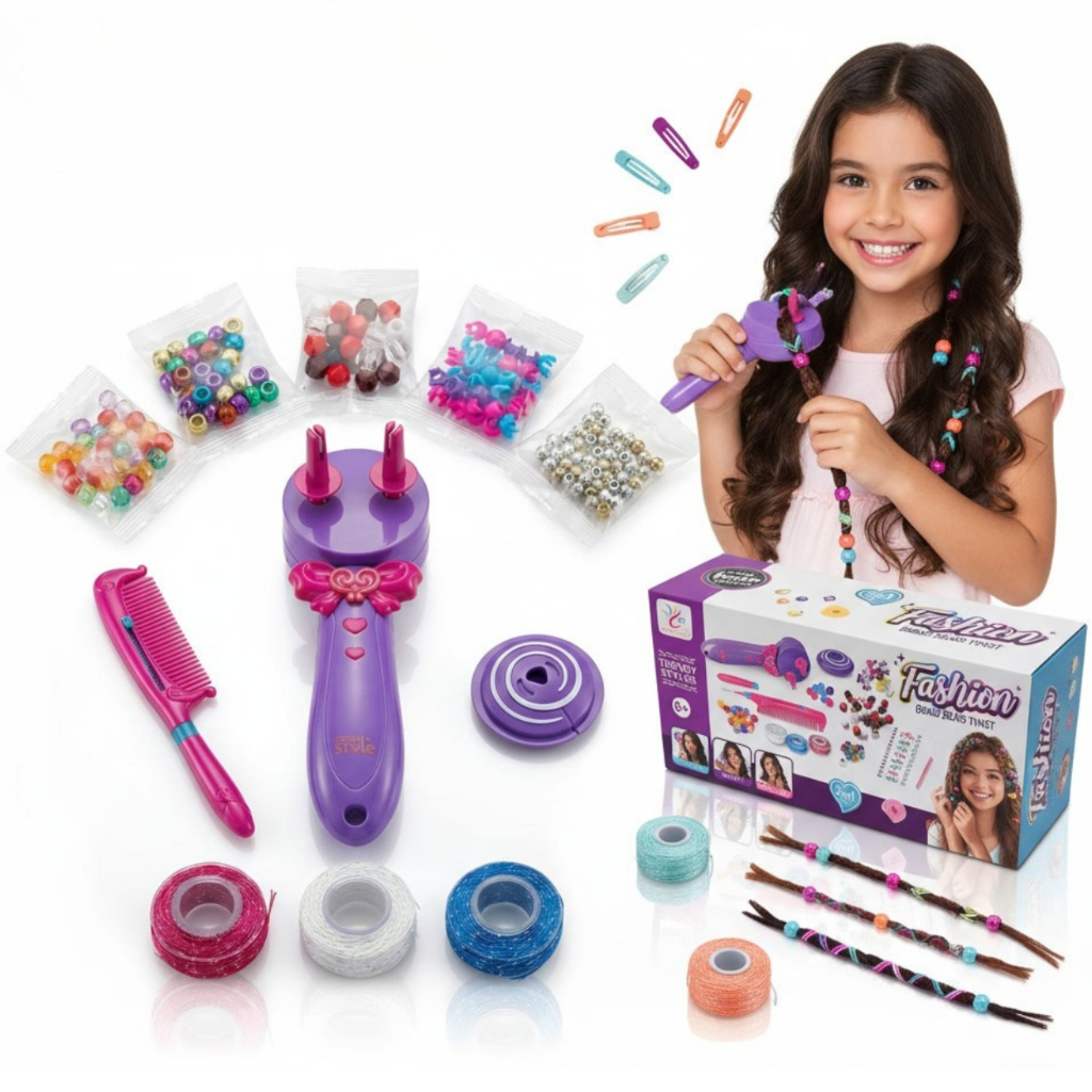 Kit Fazer Tranças Infantil Máquina Automática Miçangas Acessórios Cabelo Menina