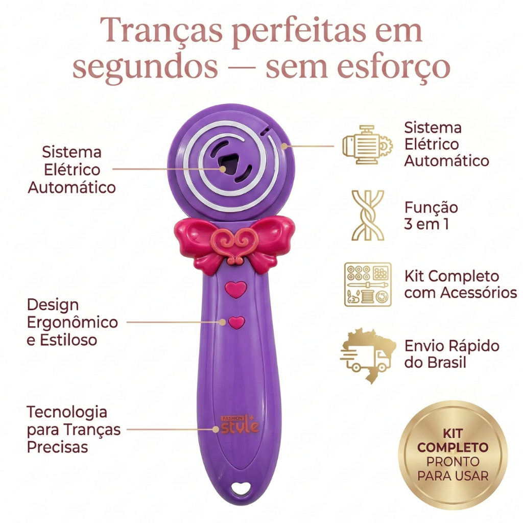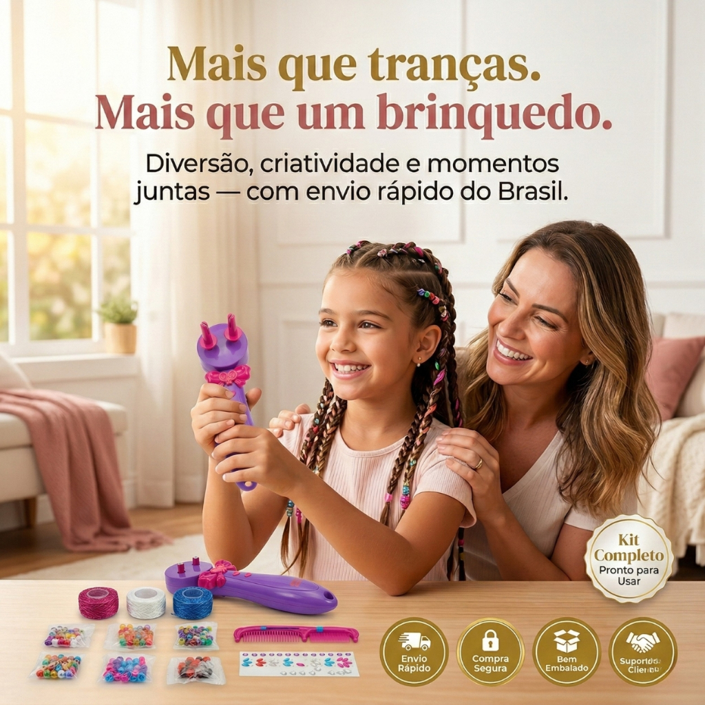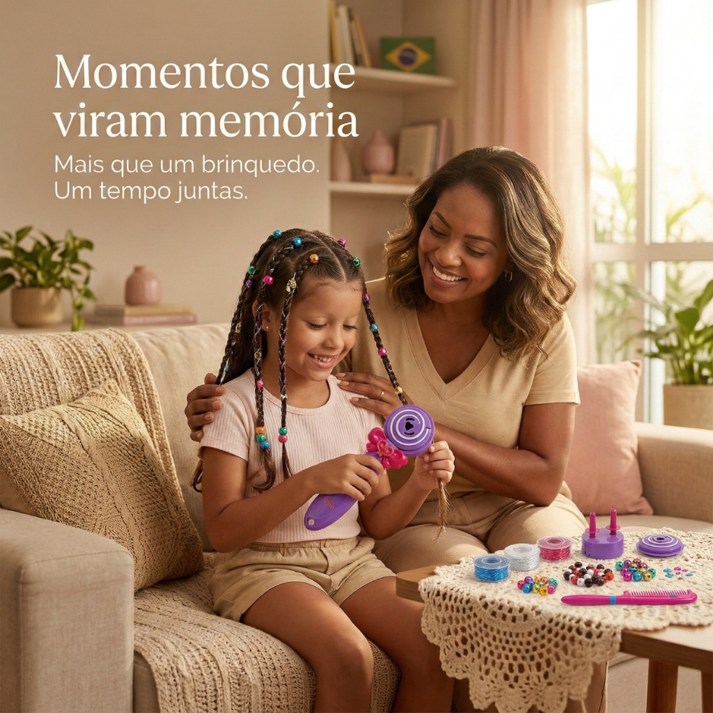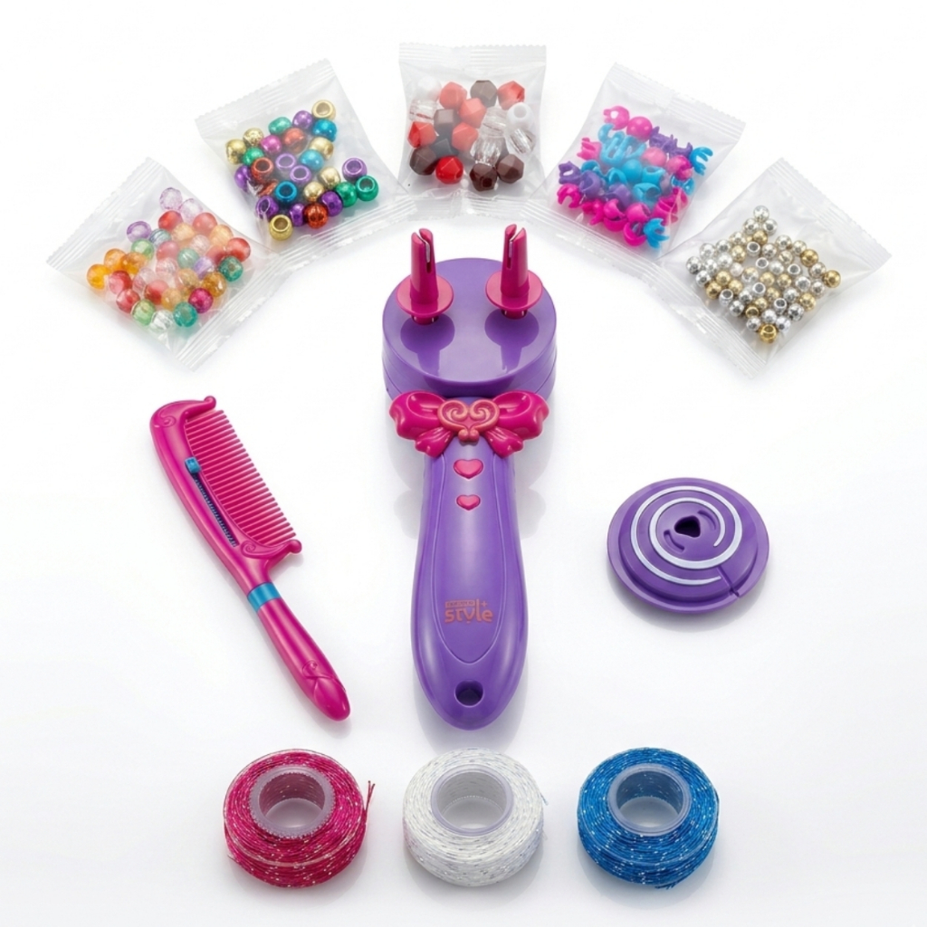 Kit Fazer Tranças Infantil Máquina Automática Miçangas Acessórios Cabelo Menina
